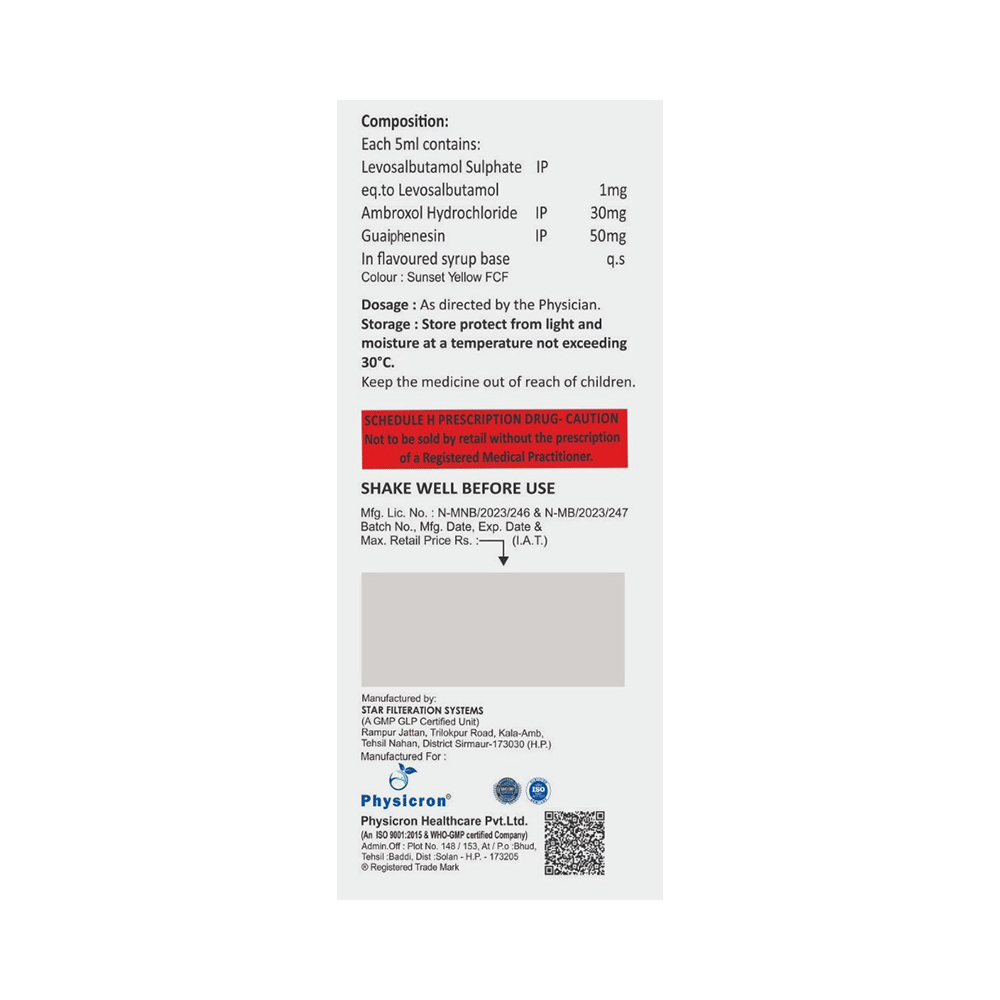 Salt Composition: Ambroxol (30mg/5ml) + Levosalbutamol (1mg/5ml) + Guaifenesin (50mg/5ml)