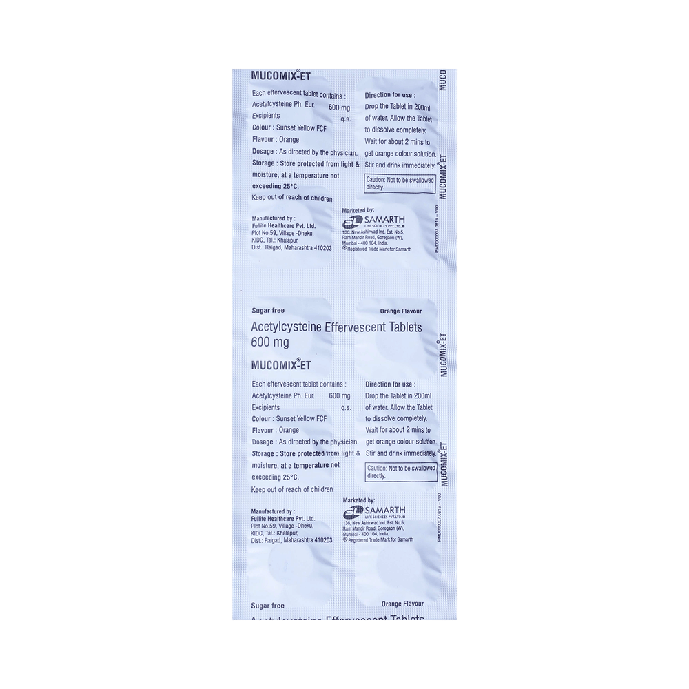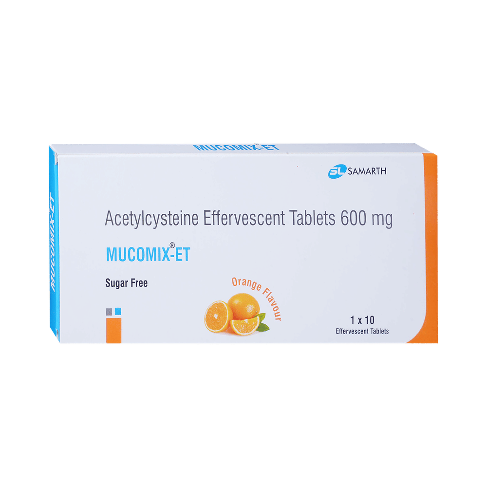 Mucomix -ET Tablet is a mucolytic medication. It works by thinning the mucus (phlegm) making it easier to cough out. Thus, it clears the air passages and makes breathing easier. It also has antioxidant action.