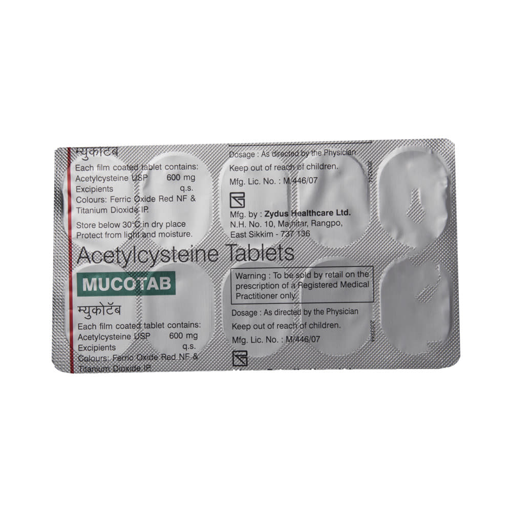 Mucotab Tablet is a mucolytic medication. It works by thinning the mucus (phlegm) making it easier to cough out. Thus, it clears the air passages and makes breathing easier. It also has antioxidant action.