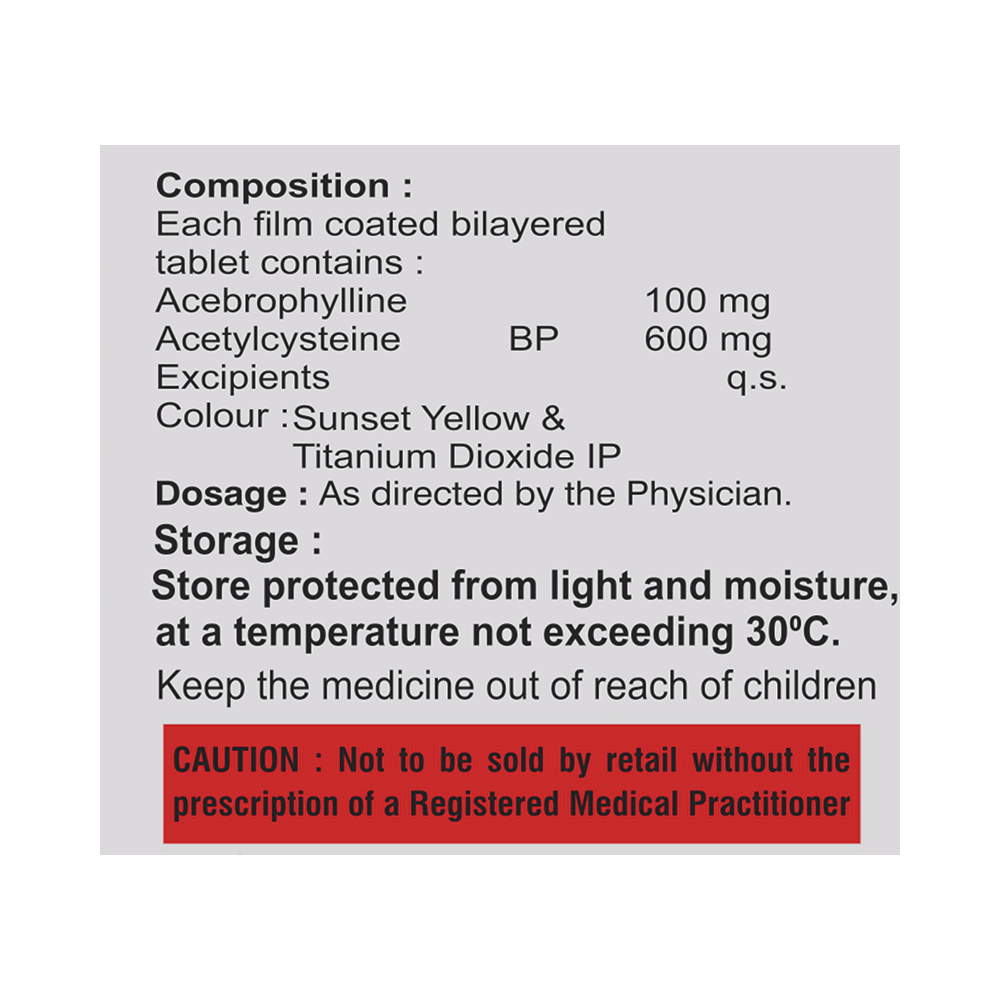 Salt Composition: Acebrophylline (100mg) + Acetylcysteine (600mg)