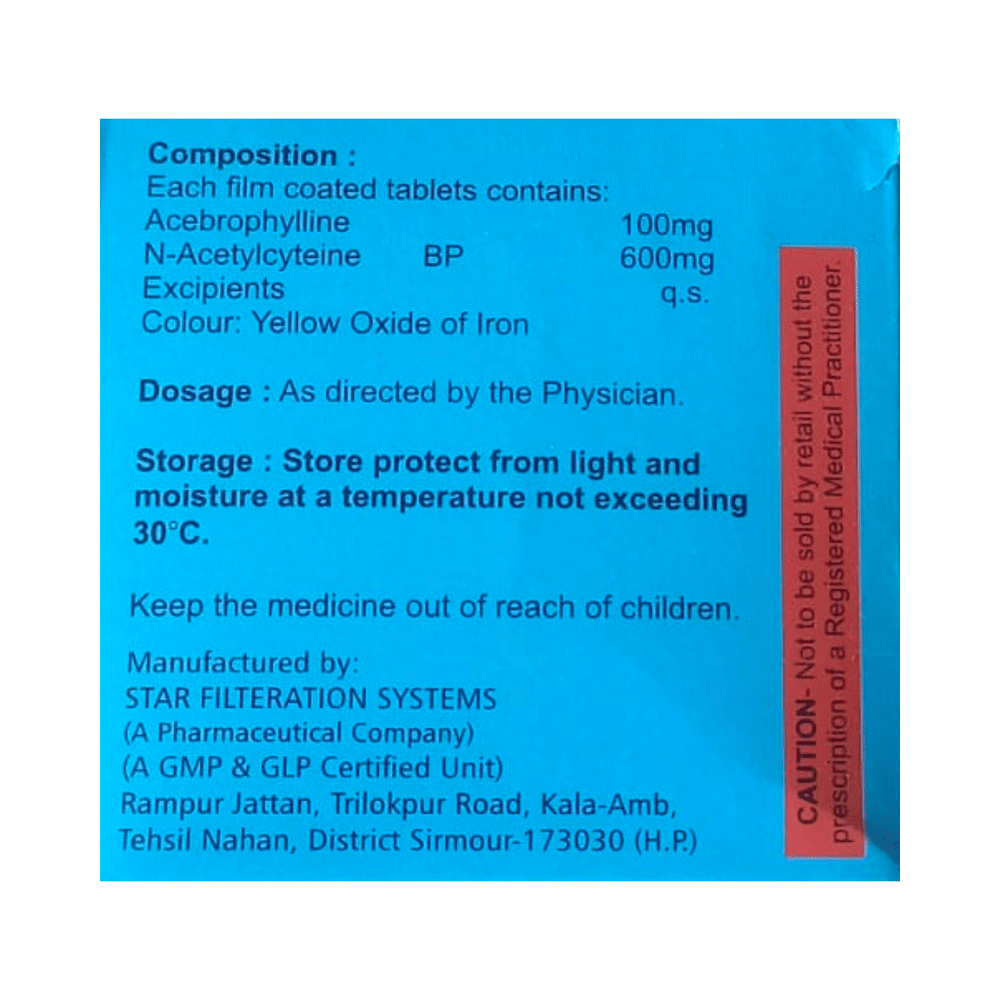 Salt Composition: Acebrophylline (100mg) + Acetylcysteine (600mg)