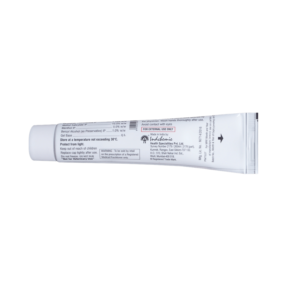 Salt Composition: Diclofenac (1.16% w/w) + Linseed Oil (3% w/w) + Menthol (5% w/w) + Methyl Salicylate (10% w/w)