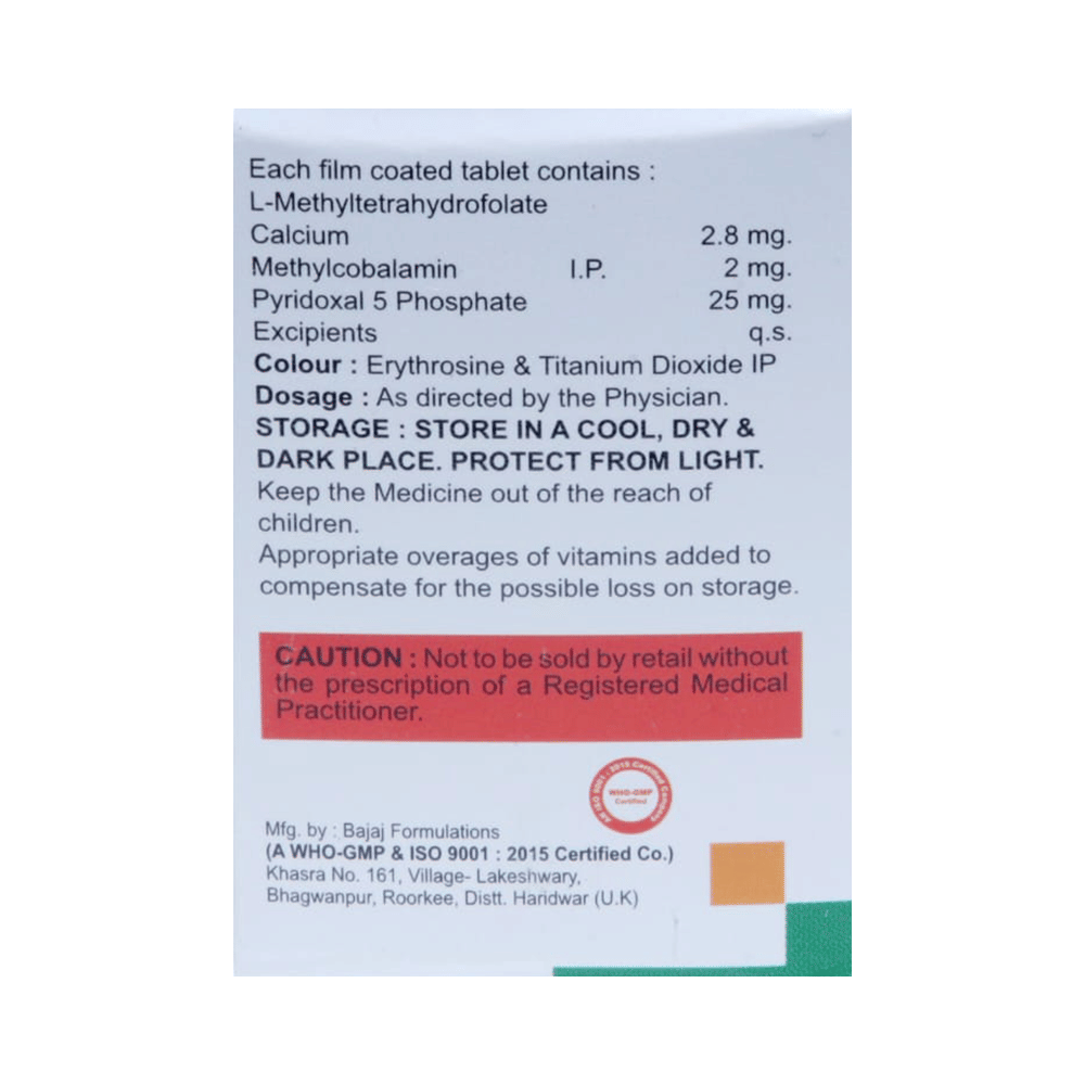 Salt Composition: L-Methyltetrahydrofolate Clacium (2.8mg) + Methylcobalamin (2mg) + Pyridoxal-5-phosphate (25mg)