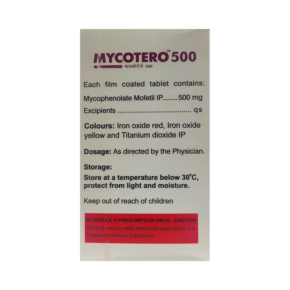 Your doctor has prescribed Mycotero 500mg Tablet to stop your body from rejecting a transplanted organ (e.g. kidney, heart or liver).