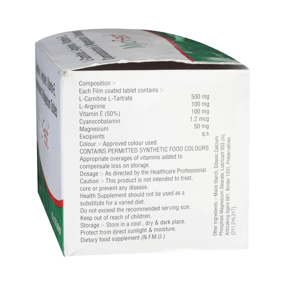 Salt Composition: Levo-carnitine (500mg) + L-Arginine (100mg) + Vitamin E (100mg) + Methylcobalamin (750mcg)