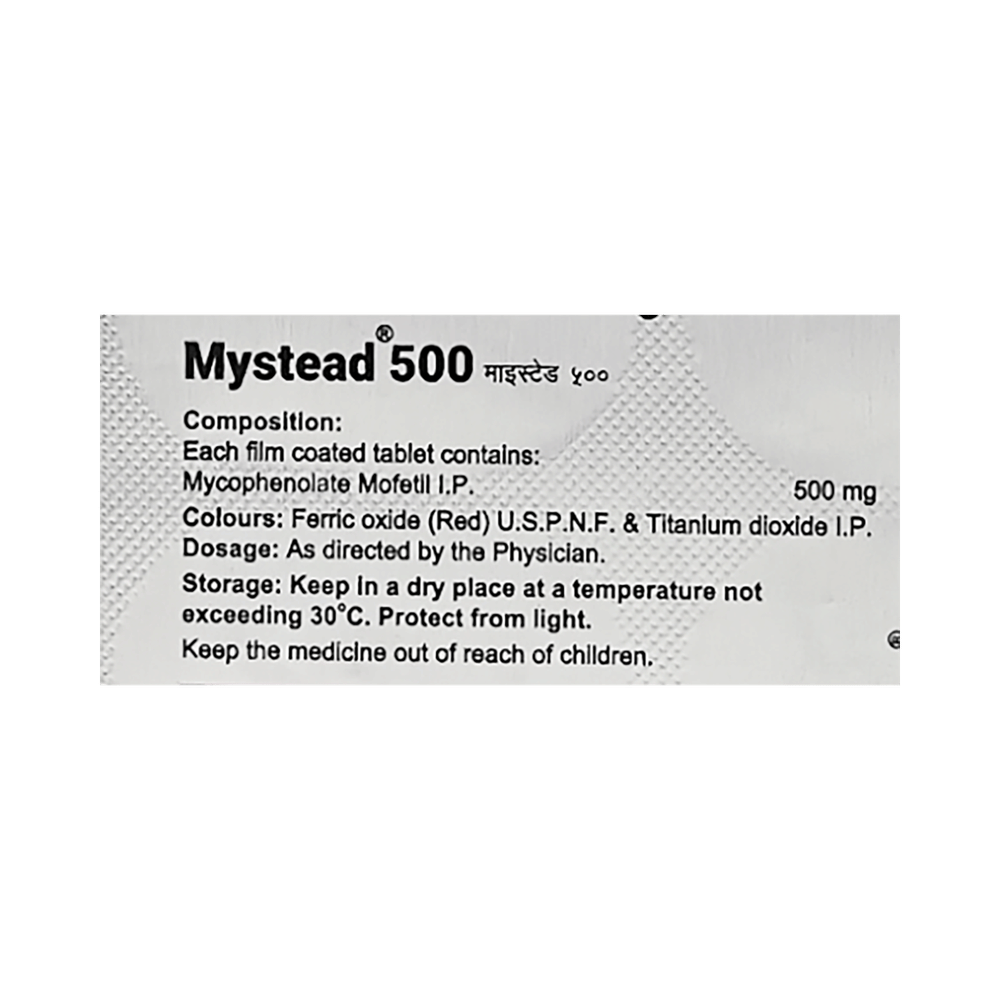 Mystead 500 Tablet is an immunosuppressant. It reduces the action of the body's own defense system (the immune system) and prevents rejection of the transplanted organ.