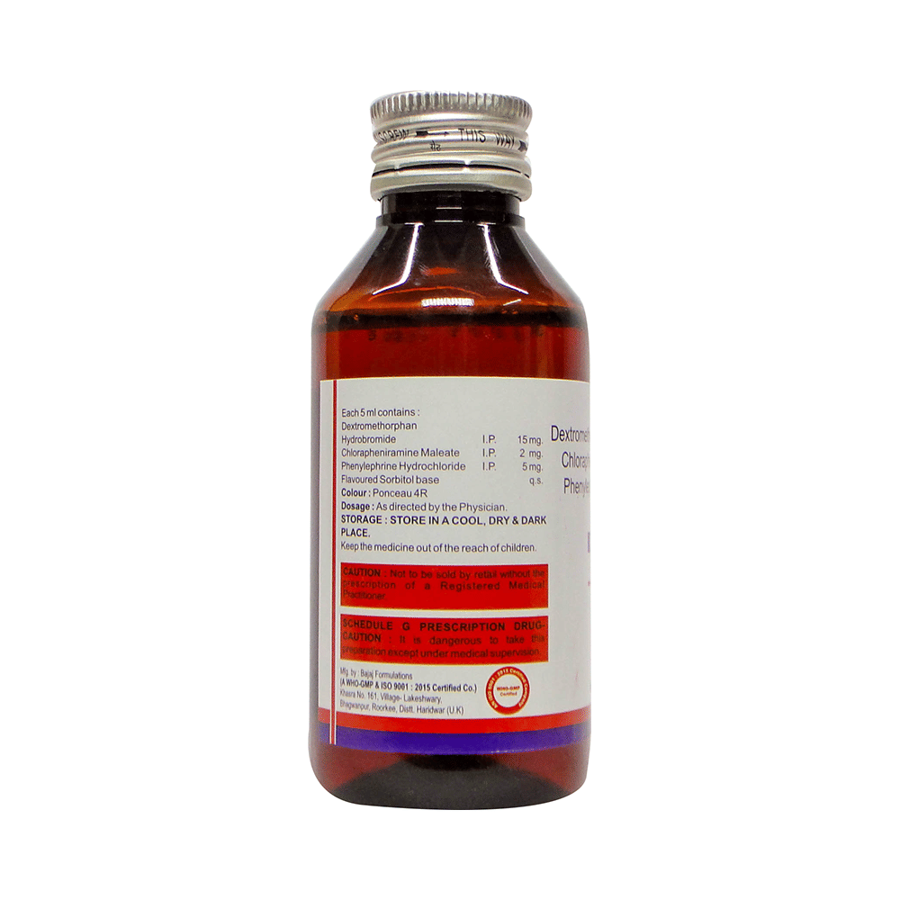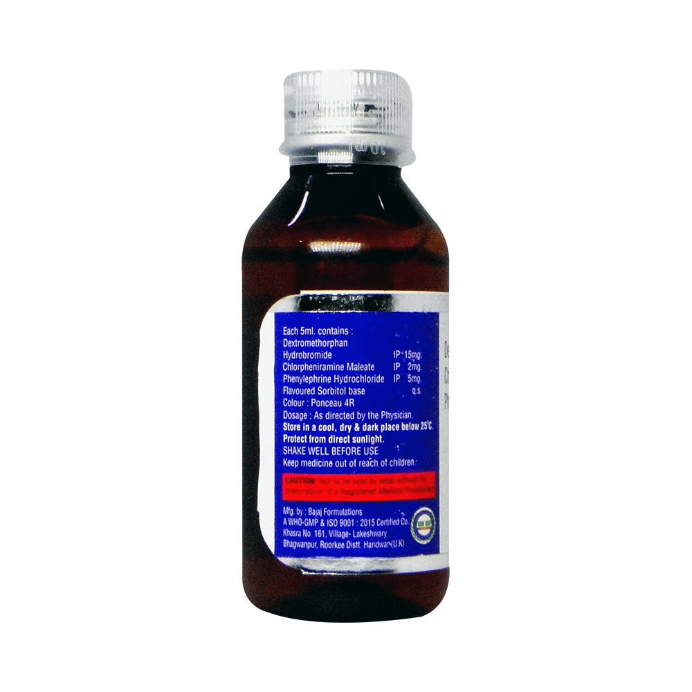 Salt Composition: Phenylephrine (5mg/5ml) + Chlorpheniramine Maleate (2mg/5ml) + Dextromethorphan Hydrobromide (15ml/5ml)