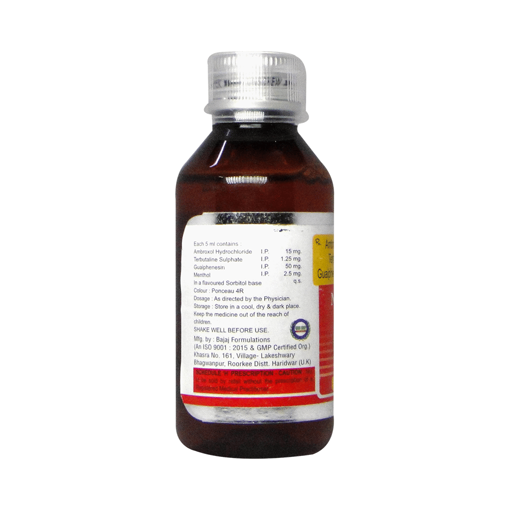 Salt Composition: Ambroxol (15mg/5ml) + Guaifenesin (50mg/5ml) + Menthol (2.5mg/5ml) + Terbutaline (1.25mg/5ml)