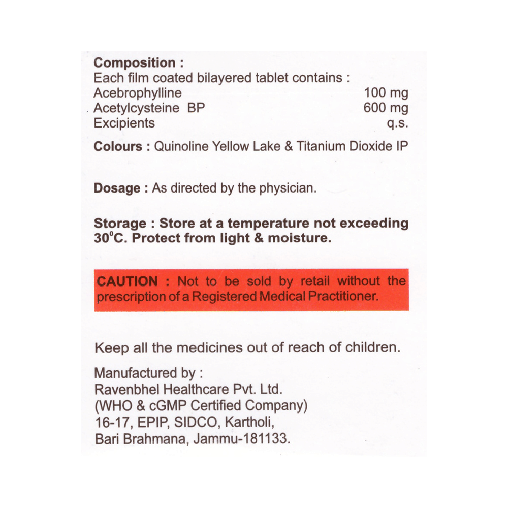 Salt Composition: Acebrophylline (100mg) + Acetylcysteine (600mg)