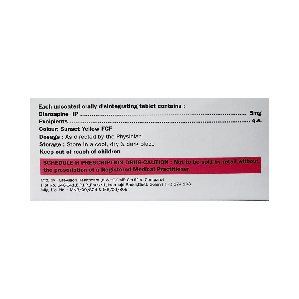 Naloz 5 Tablet DT is used in the treatment of schizophrenia (a mental disorder that can result in hallucinations or delusions and also adversely affects a person’s ability to think and behave) and mania. Naloz 5 Tablet DT may be taken with or without food. However, it is advised to take it at the same time each day as this helps to maintain a consistent level of medicine in the body. Take this medicine in the dose and duration as advised by your doctor and if you have missed a dose, take it as soon as you remember. This medication mustn't be stopped suddenly without talking to your doctor as it may worsen your symptoms.Some common side effects of this medicine include dryness in the mouth, constipation, muscle rigidity, and restlessness. Initially, this medicine may cause a sudden drop in blood pressure when you change positions, so it is better to rise slowly if you have been sitting or lying down. It also causes dizziness and sleepiness, so do not drive or do anything that requires mental focus until you know how this medicine affects you.However, this medicine may increase your weight, blood sugar, and cholesterol levels but, modifying your lifestyle by having a healthy diet and exercising regularly can reduce this side effect. You should be cautious as in rare cases it may cause serious side effects like very high blood sugar levels or seizures.