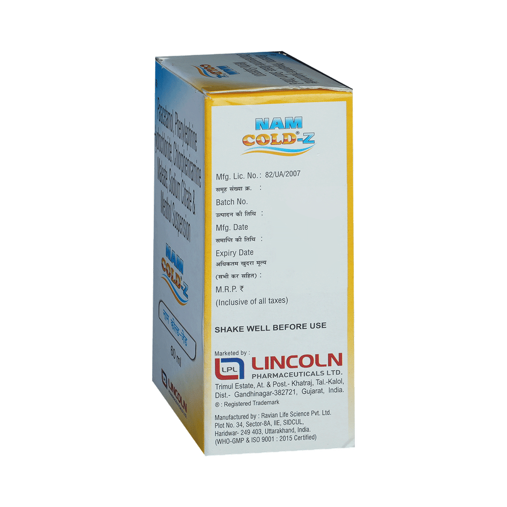 Take this medicine in the dose and duration as advised by your doctor. Check the label for directions before use. Measure it with a measuring cup and take it by mouth. Shake well before use. Nam Cold Z Syrup may be taken with or without food, but it is better to take it at a fixed time.