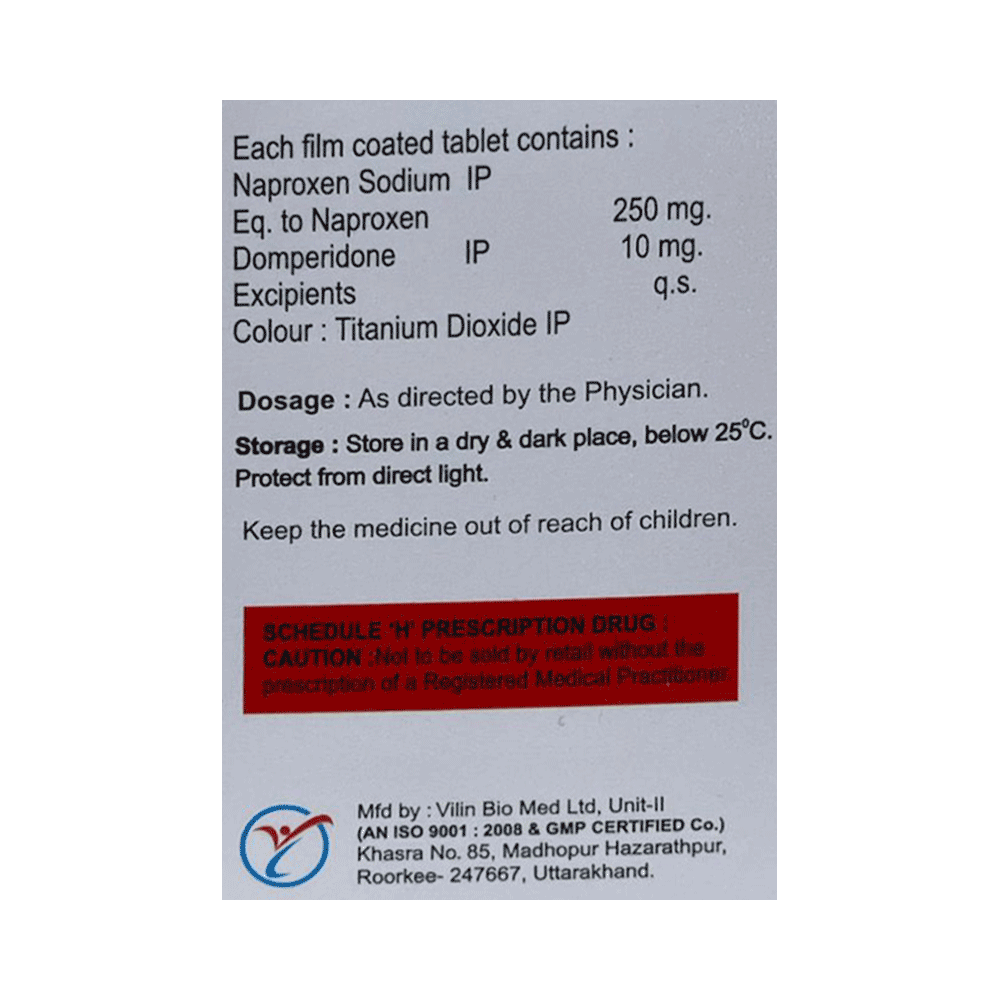 Salt Composition: Naproxen (250mg) + Domperidone (10mg)
