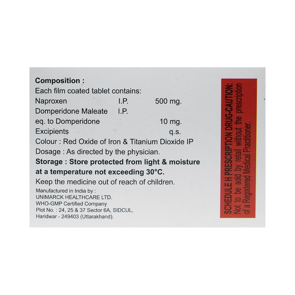 Salt Composition: Naproxen (500mg) + Domperidone (10mg)