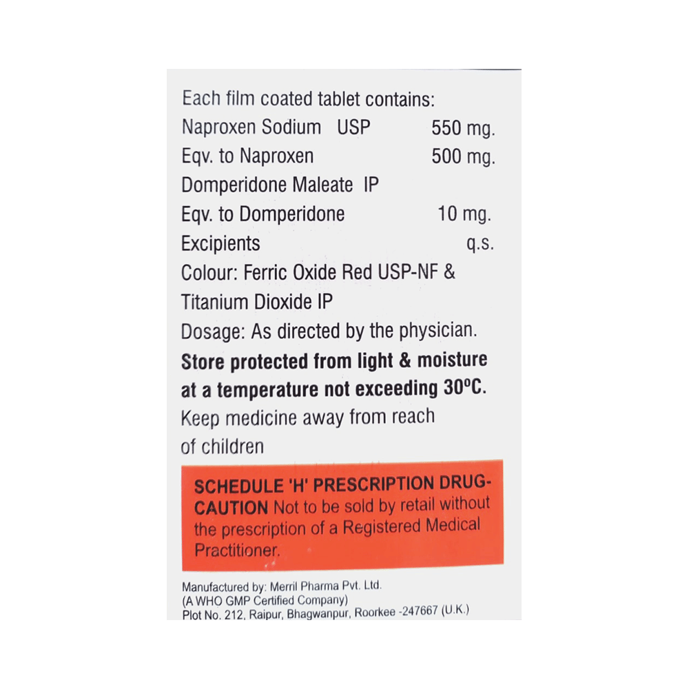 Salt Composition: Naproxen (500mg) + Domperidone (10mg)