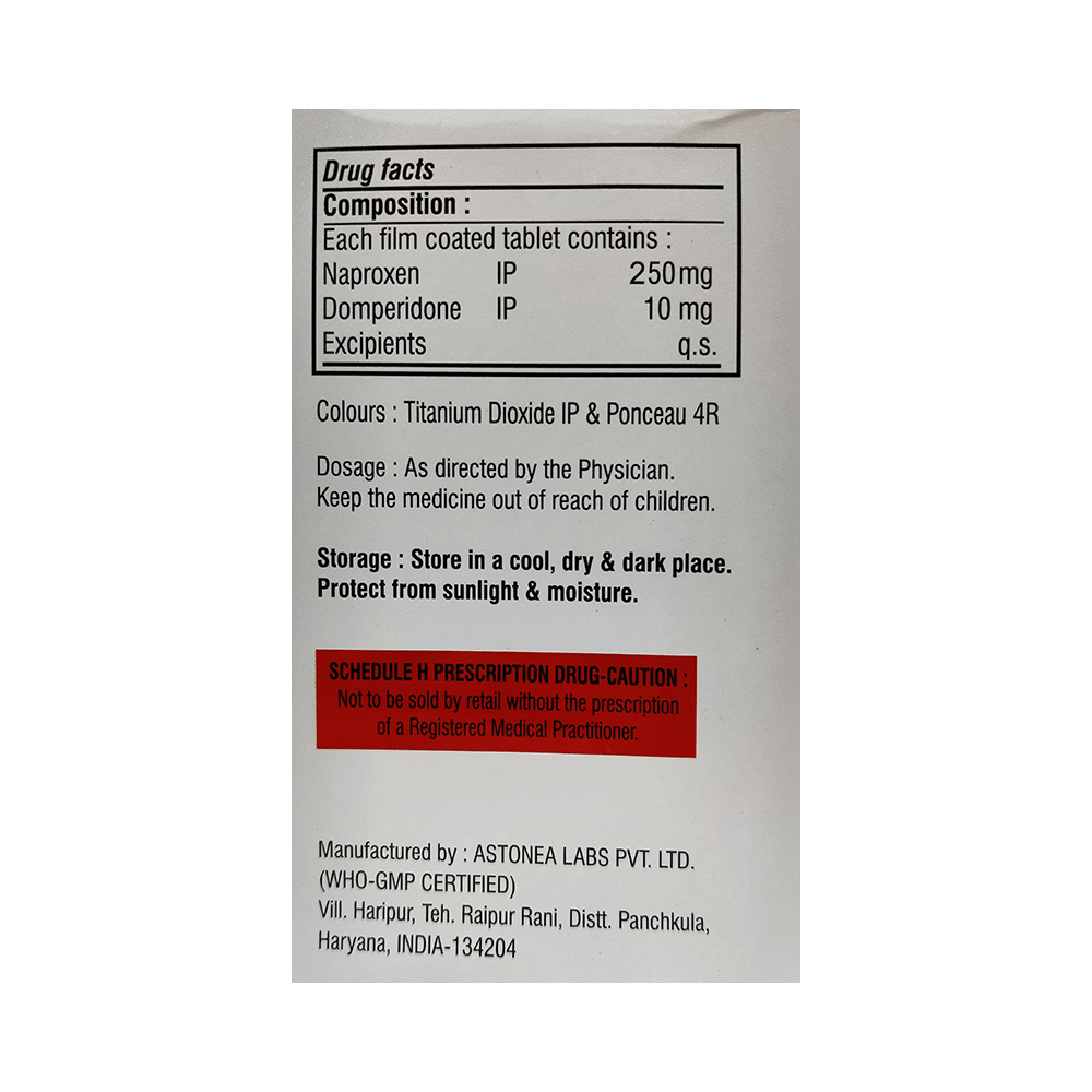 Salt Composition: Naproxen (250mg) + Domperidone (10mg)
