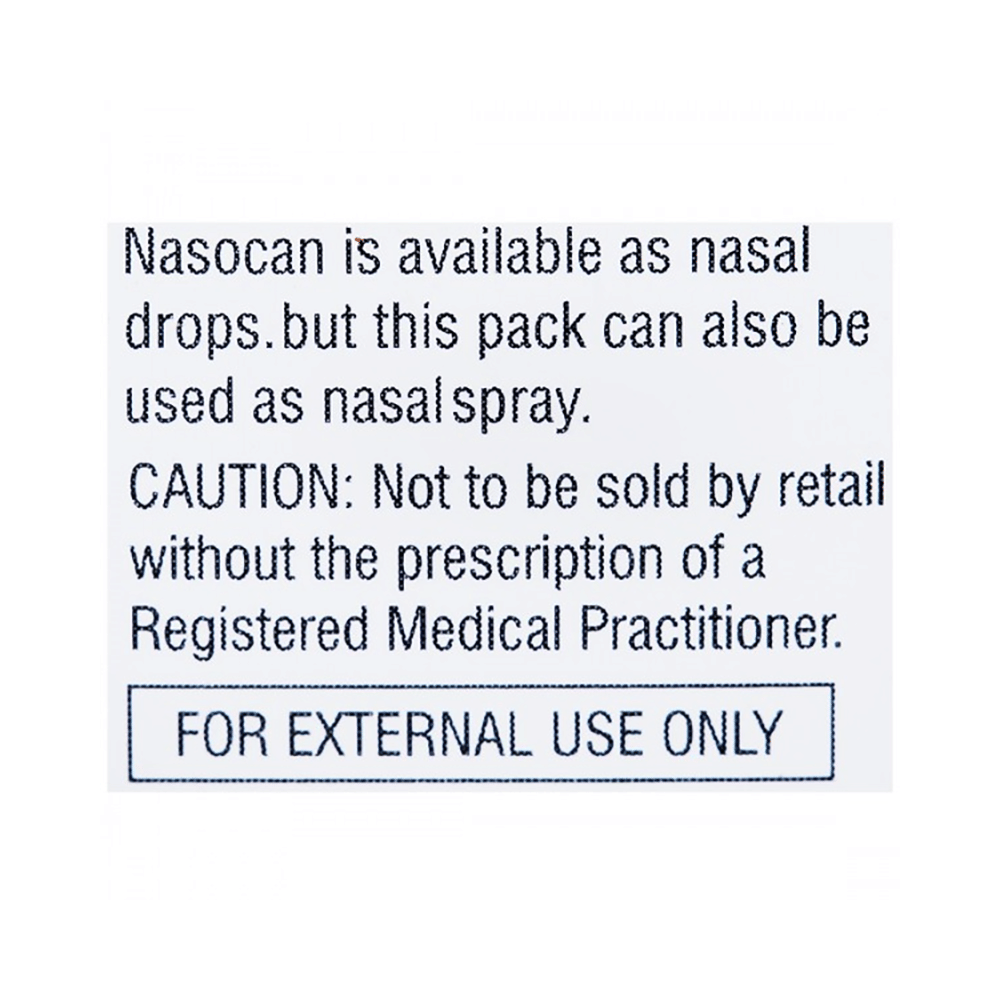 Nasocan Nasal Drops is a medicine used to treat nasal congestion (blocked nose) caused by the common cold or flu, hay fever, and other allergies. It shrinks blood vessels in your nose to relieve nasal congestion and blockage. Nasocan Nasal Drops should be used as you have been advised by your doctor. It provides only temporary relief so do not use it more often or for longer than recommended. Normally you should blow your nose gently before using it, keep one nostril closed while applying the medicine into the other, and then sniff hard to make sure it reaches deep into the nose. Then repeat for the other nostril. It provides relief very quickly and can last for several hours. If you use this medicine too often or for too long, it may worsen your symptoms rather than improve them.The most common side effects are burning sensation in the nose and throat, local irritation, nausea, headache, and dry nose. These are usually mild but if they bother you or do not go away, your doctor may be able to suggest ways of preventing or reducing them.It is generally a safe medicine but, before taking it, talk to your doctor about any health problems you have such as heart problems or high blood pressure (hypertension) or overactive thyroid gland or glaucoma, or prostate enlargement. Let your doctor know about any other medicines you are taking to make sure you are safe. Ask your doctor for advice before using this medicine if you are pregnant or breastfeeding.