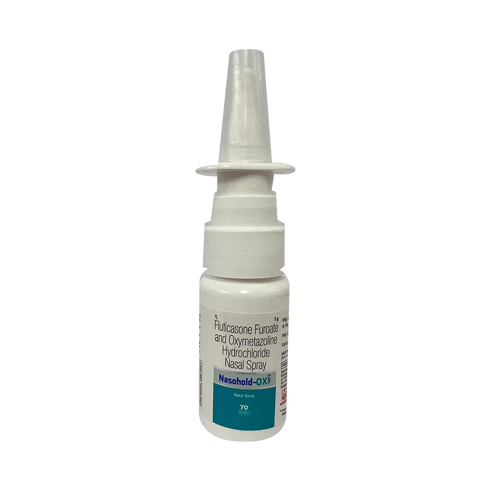 Nasohold-OX Nasal Spray is a combination medicine used in the treatment of allergy symptoms, such as runny nose, stuffy nose, sneezing, watery eyes, and congestion or stuffiness. Nasohold-OX Nasal Spray should be used as advised by your doctor. Do not use it more often or for longer than recommended. Normally you should blow your nose gently before using it, keep one nostril closed while applying the medicine into the other, and then sniff hard to make sure it reaches deep into the nose. Then repeat for the other nostril. It provides relief very quickly and can last for several hours. If you use this medicine too often or for too long, it may worsen your symptoms rather than improve them. It is also beneficial to have plenty of fluids while taking this medication. The most common side effects are taste change, nosebleeds, and headaches. Most of these are temporary and usually resolve with time. Contact your doctor straight away if you are at all concerned about any of these side effects.Never support self-medication or recommend your medicine to another person. Before you start taking this medicine it is important to inform your doctor if you are suffering from liver or kidney disease. You should also tell your doctor if you are pregnant, planning pregnancy, or breastfeeding.