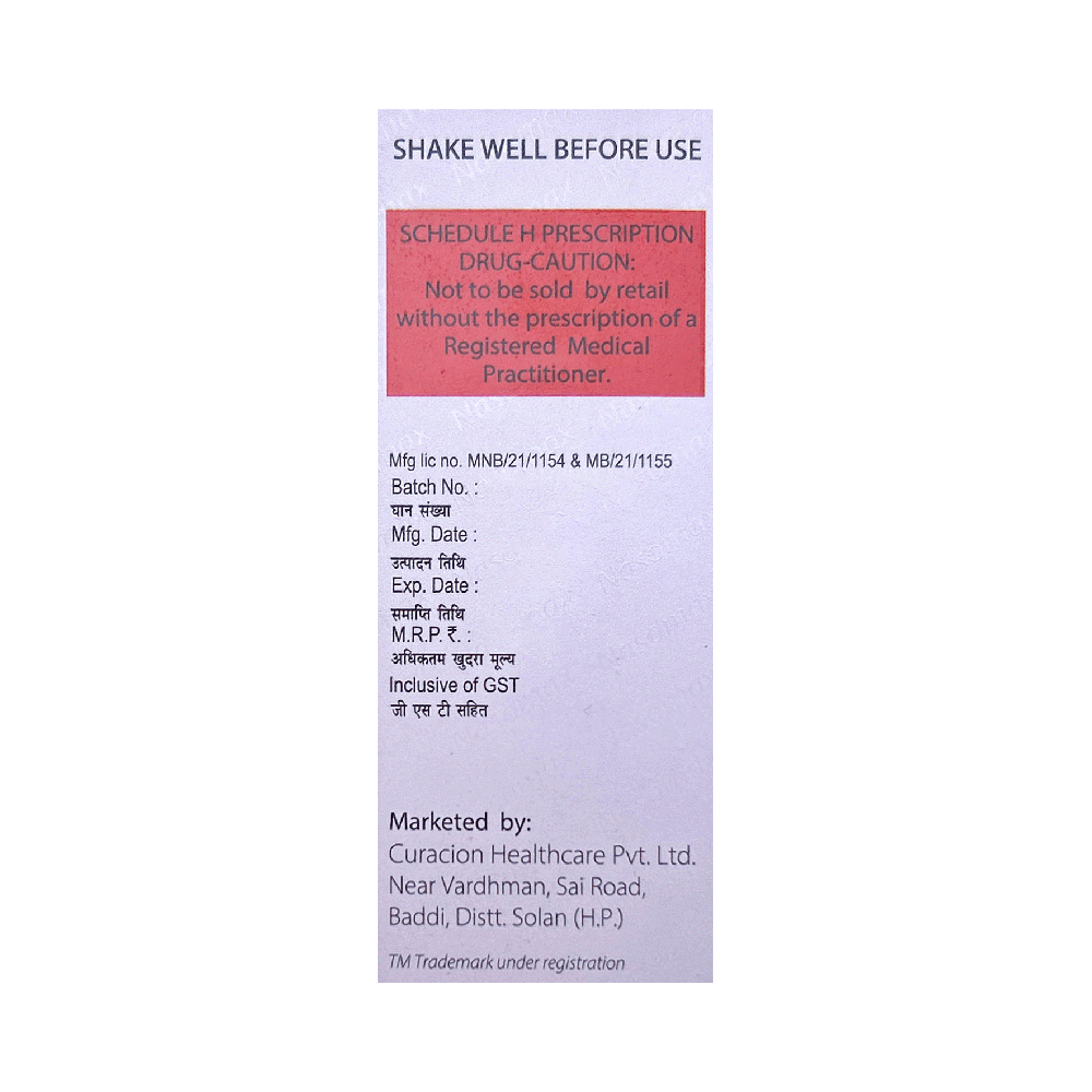 Nasomax Syrup can trigger constipation in your child. Give plenty of fluids and a fiber-rich diet to your child.