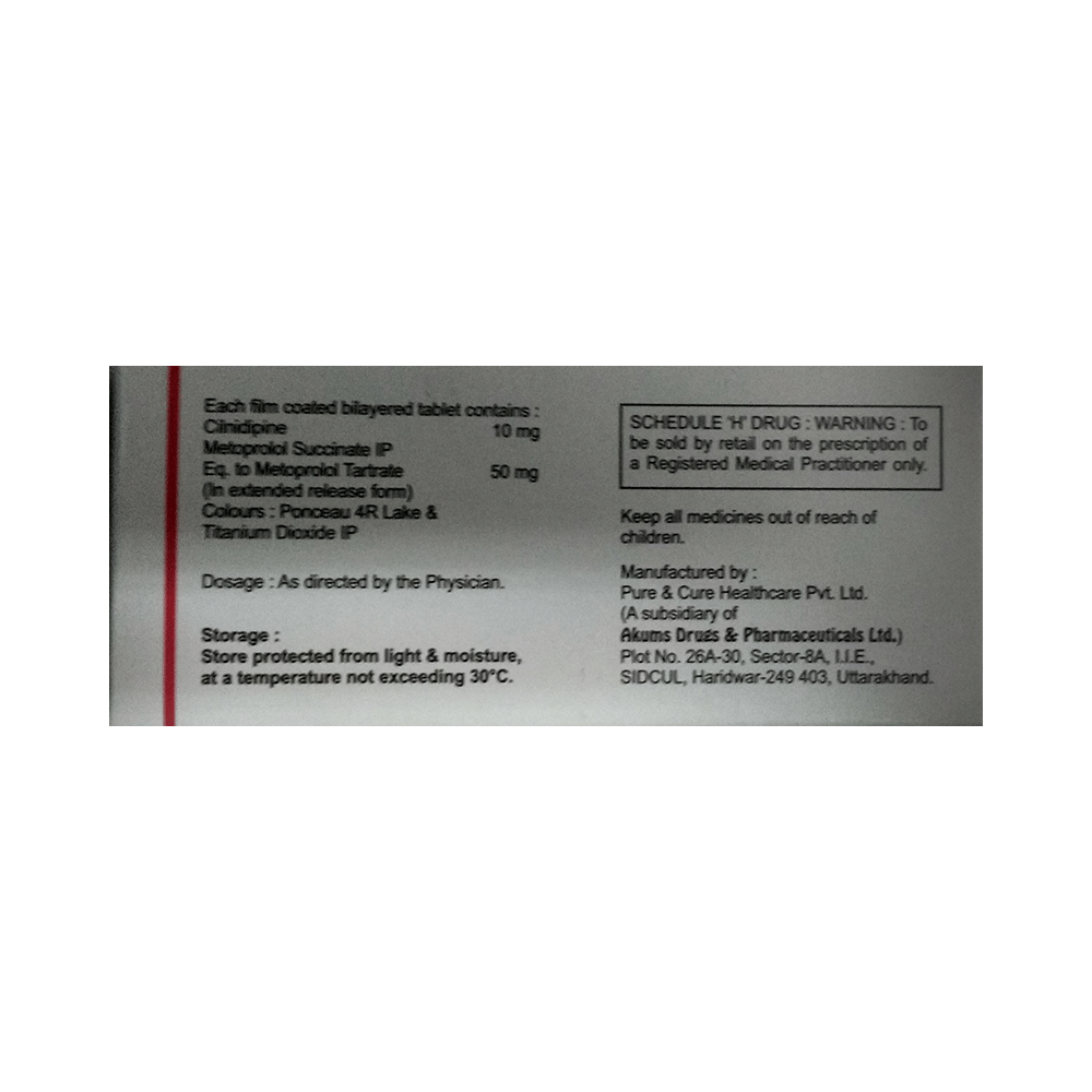 Salt Composition: Cilnidipine (10mg) + Metoprolol Succinate (50mg)