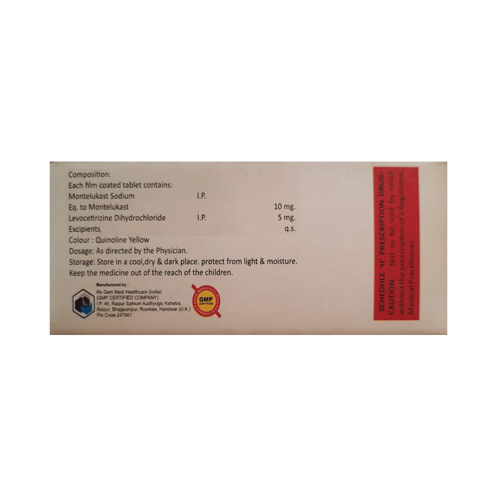 Salt Composition: Levocetirizine (5mg) + Montelukast (10mg)