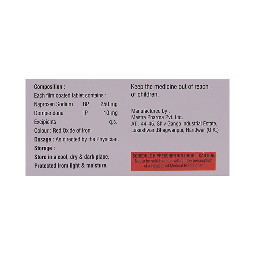 Salt Composition: Naproxen (250mg) + Domperidone (10mg)