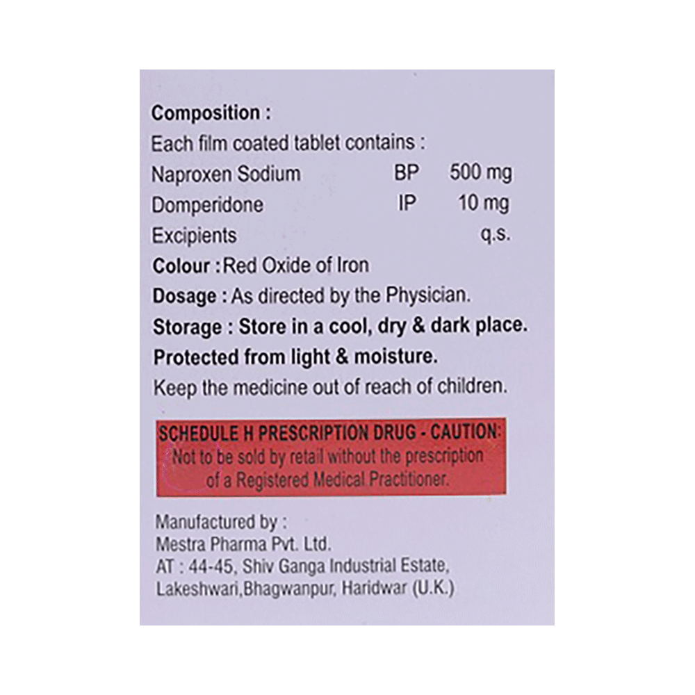 Salt Composition: Naproxen (500mg) + Domperidone (10mg)