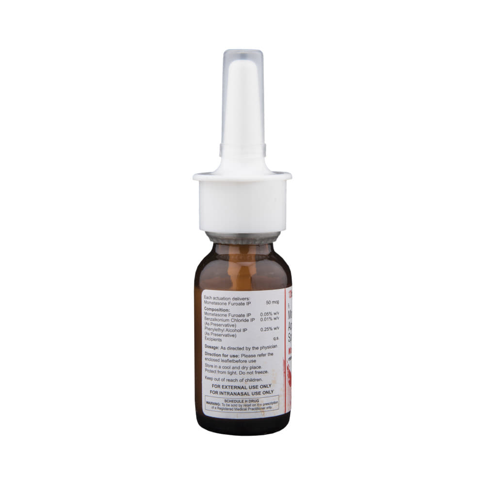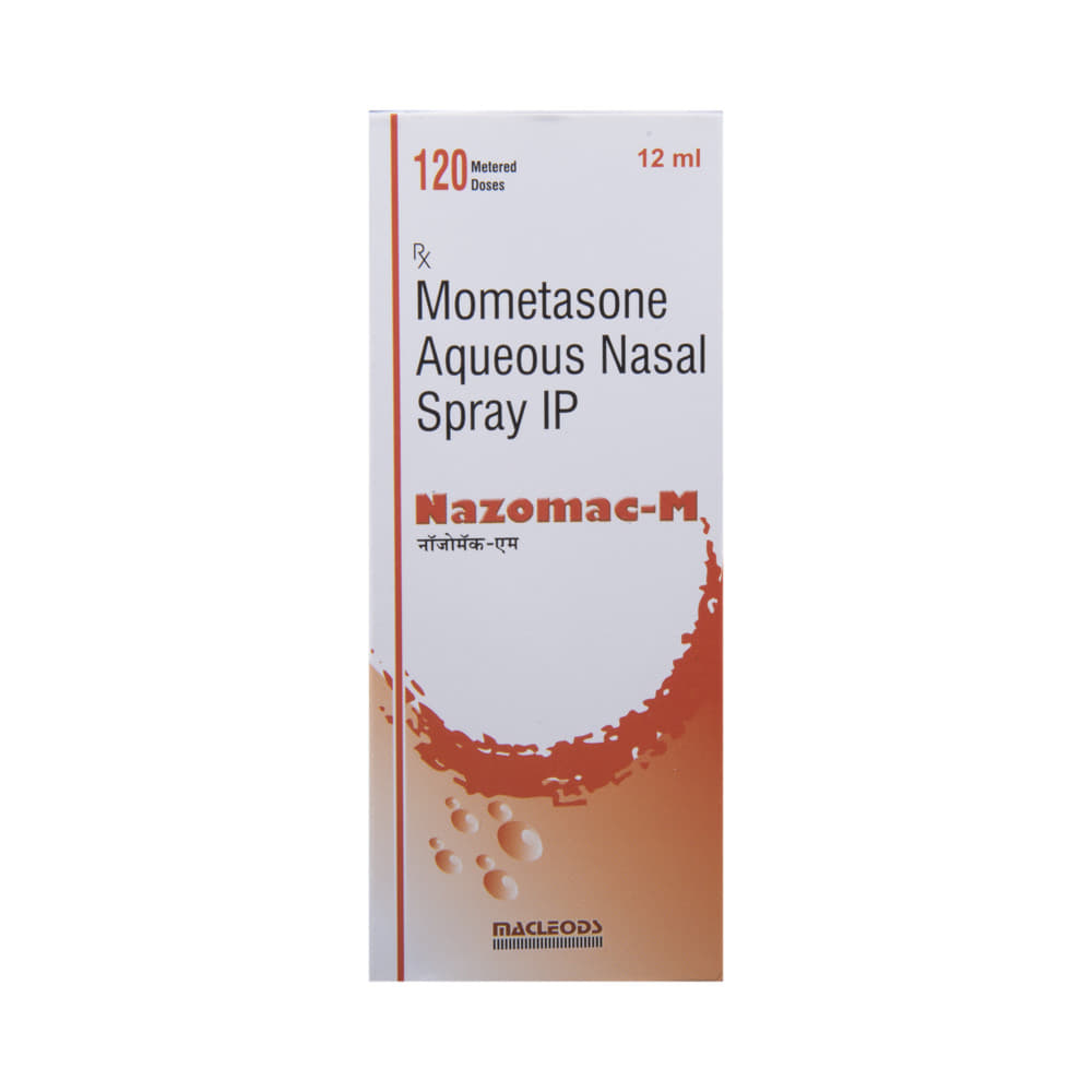 Nazomac-M Nasal Spray is a medicine used to prevent and treat allergic symptoms like sneezing and runny nose due to allergies, nasal congestion, and nasal polyps. It works by reducing swelling and irritation in your nose and belongs to a group of medicines called corticosteroids. You should always use Nazomac-M Nasal Spray as advised by your doctor. To get the full benefit of the medicine you should take it regularly. Blow your nose gently before using it, keep one nostril closed while applying the medicine into the other, and then sniff hard to make sure it reaches deep into the nose. Repeat for the other nostril.The most common side effects of this medicine include nasal irritation, sore throat, wheezing, nosebleed, upper respiratory tract infection, viral infections, and vomiting. If you are worried about any of the side effects, let your doctor know. Your doctor might be able to help you cope with the side effects. In general, you should try to avoid situations which make your symptoms worse (things like pollen and dust mites) and it’s best not to smoke.Before using this medicine, you should ask your doctor for advice if you are pregnant or breastfeeding. It is important to discuss the risks and benefits with your doctor. Let your doctor also know if you have any other medical conditions taking any other medicines.