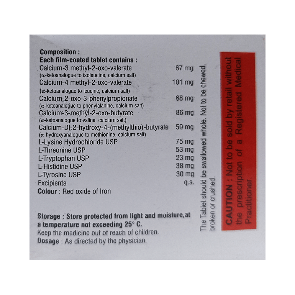 Nefroheal Tablet belongs to a class of drugs called nutritional supplements. It follows the same catabolic pathways as amino acids and works by improving the metabolism of protein in the body, thereby improving renal function.