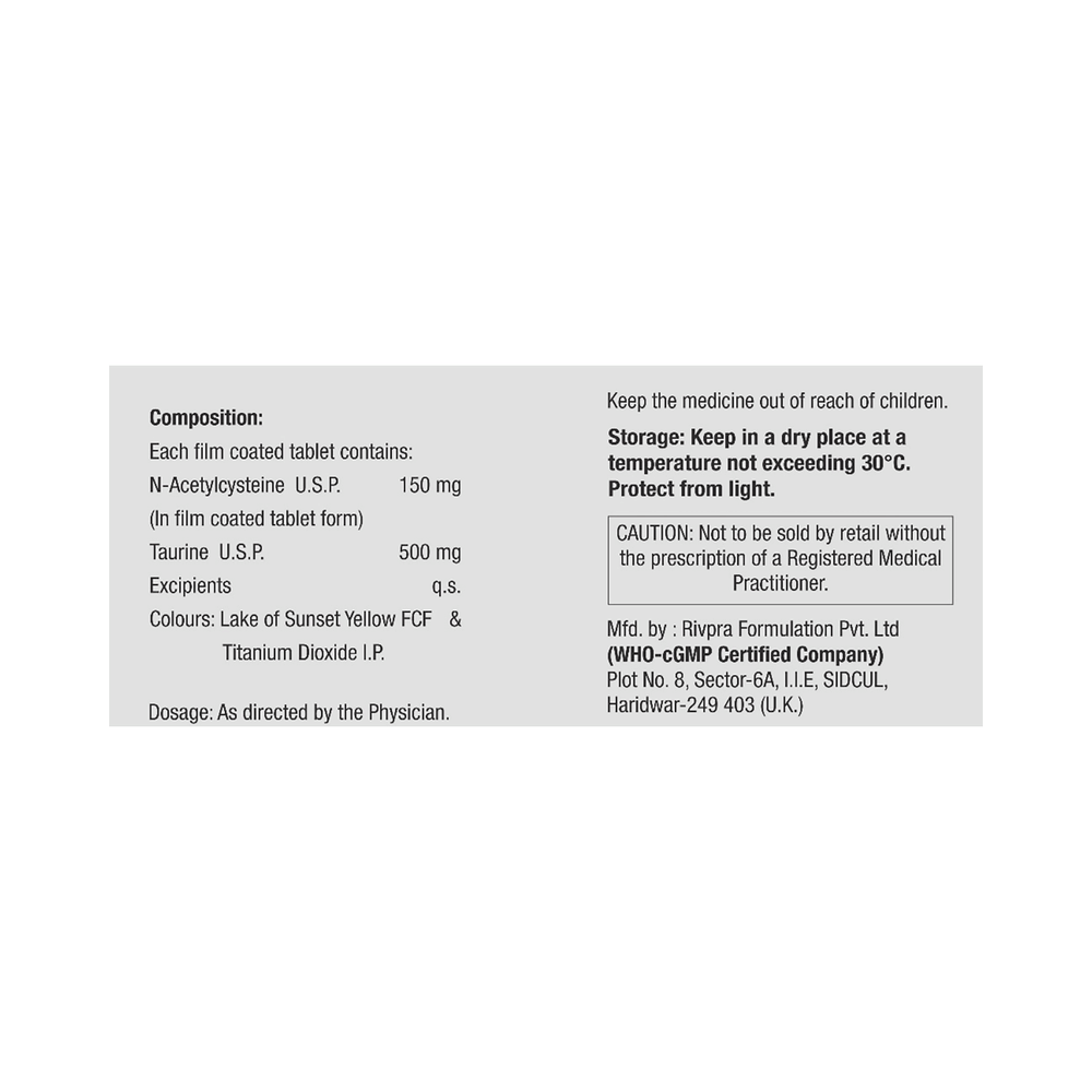 Salt Composition: Taurine (500mg) + Acetylcysteine (150mg)