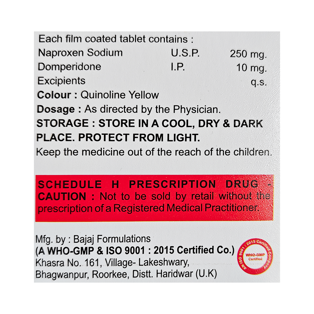 Salt Composition: Naproxen (250mg) + Domperidone (10mg)