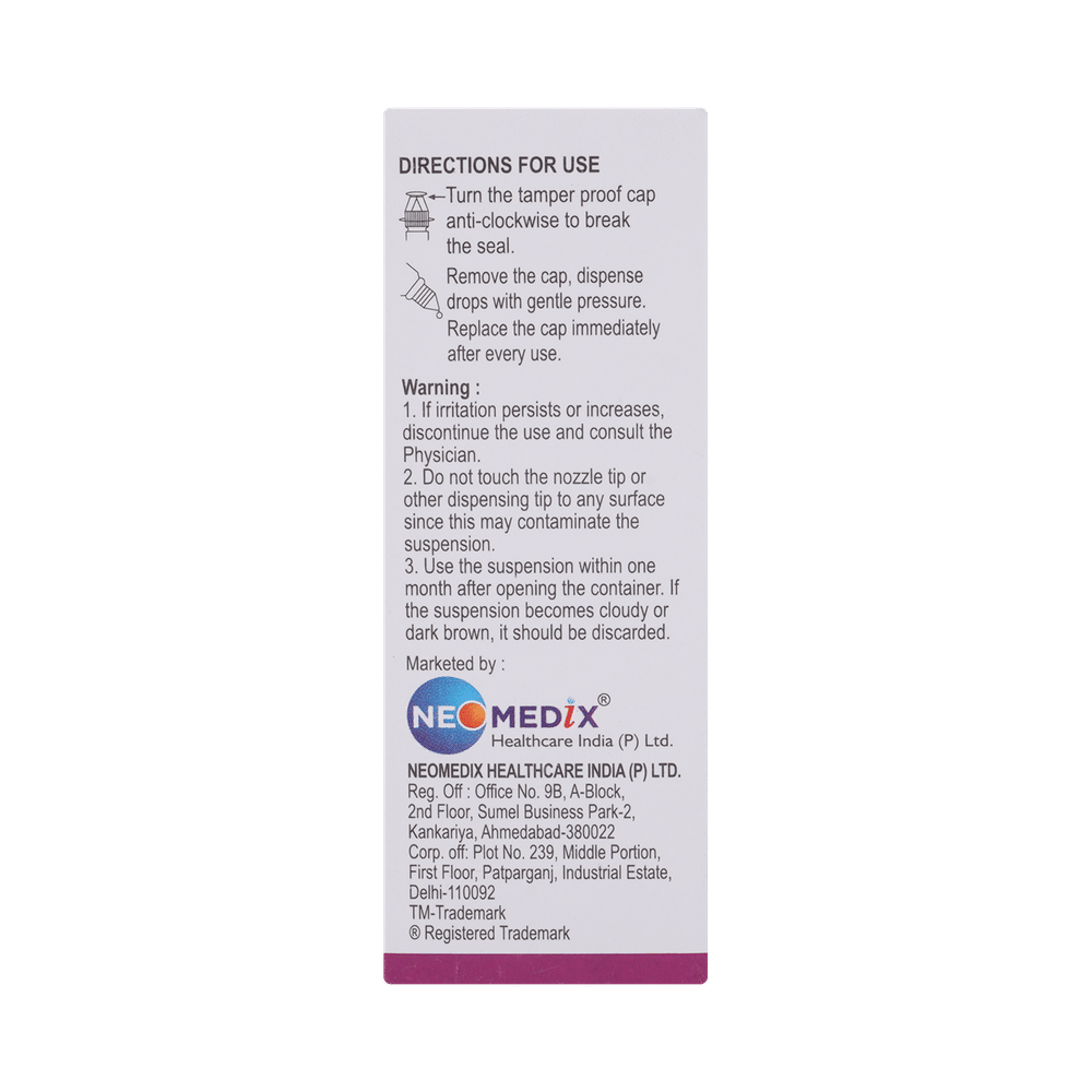 This medicine is for external use only. Use it in the dose and duration as advised by your doctor. Check the label for directions before use. Hold the dropper close to the eye without touching it. Gently squeeze the dropper and place the medicine inside the lower eyelid. Wipe off the extra liquid.