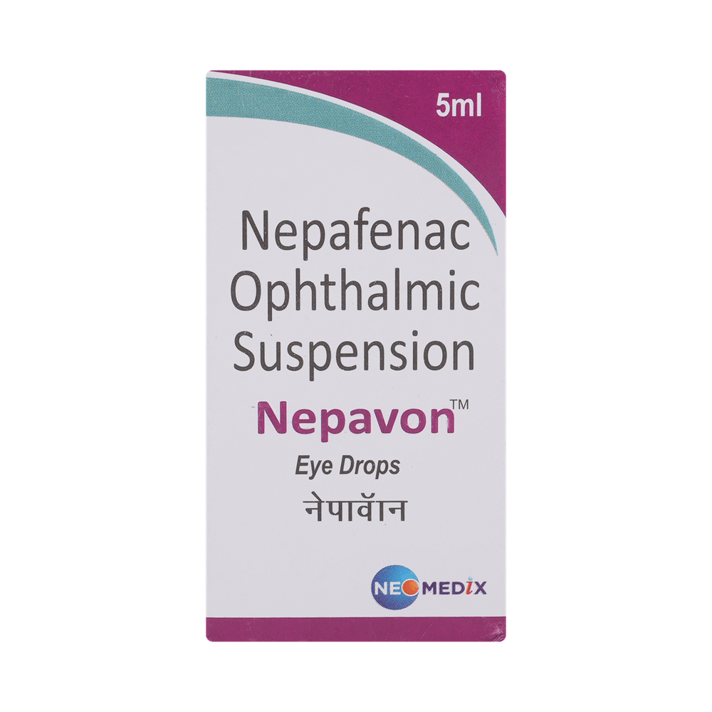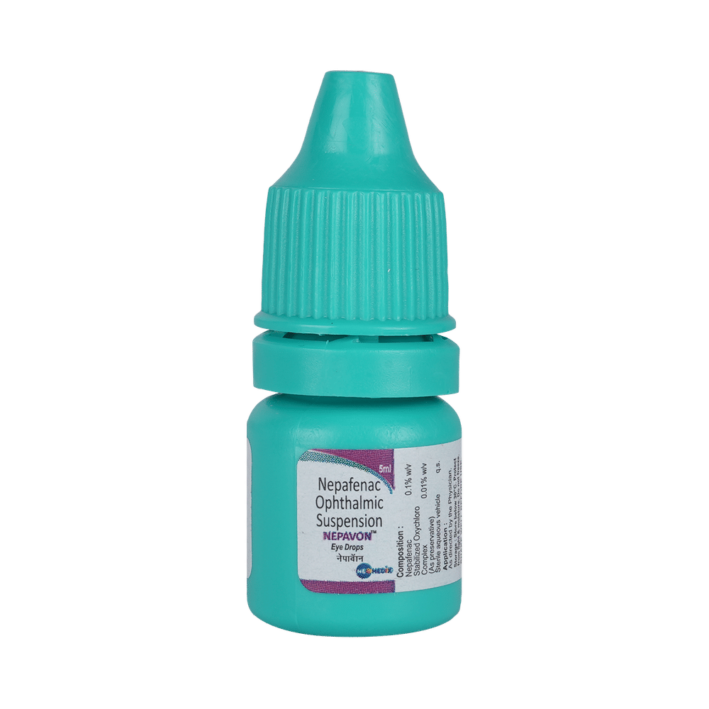 Nepavon 0.1% Eye Drop is a non-steroidal anti-inflammatory drugs (NSAID) which works by blocking the release of certain chemical messengers that cause pain and inflammation (redness and swelling) in the eye.
