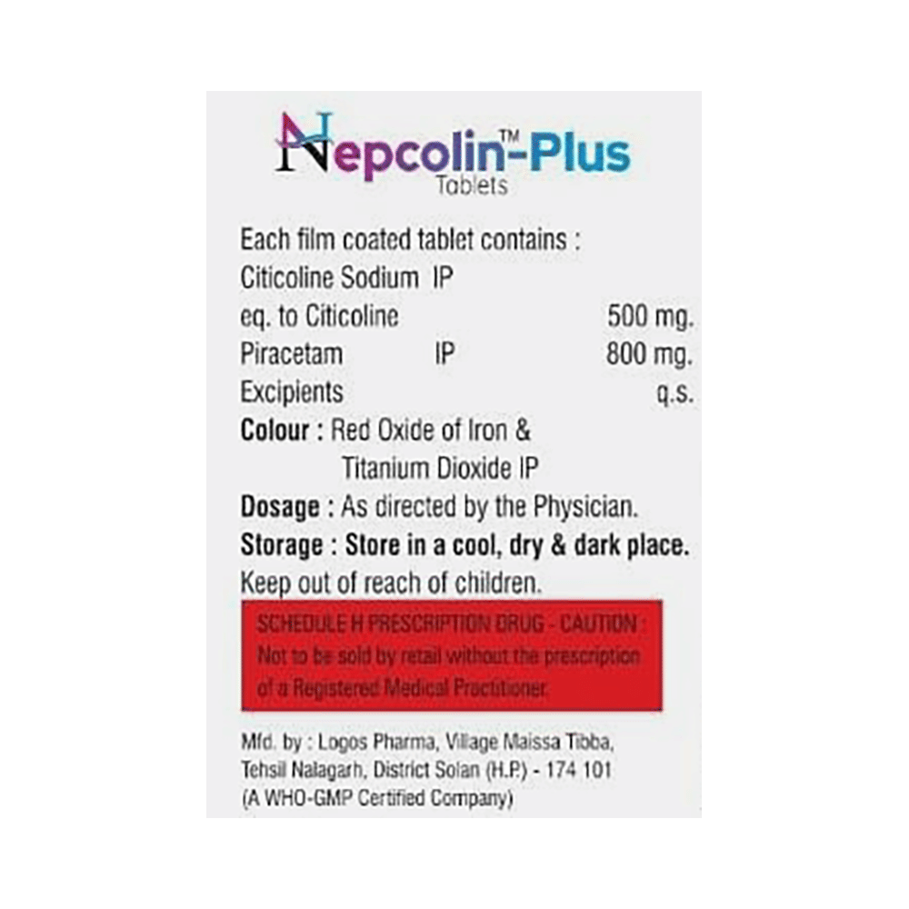 Nepcolin-Plus Tablet is a medicine used in stroke rehabilitation and as a cognitive enhancer. It protects the nerve cells in the brain from damage and also helps to repair the damaged nerve cells. It may also be used in the treatment of brain trauma. Nepcolin-Plus Tablet may be taken with or without food, preferably at the same time each day. Take it at the same time each day as this helps to maintain a consistent level of medicine in the body. Take this medicine in the dose and duration as advised by your doctor and if you have missed a dose, take it as soon as you remember it. Do not skip any doses and finish the full course of treatment even if you feel better. It is important that this medication is not stopped suddenly without talking to your doctor as it may worsen your symptoms.Some common side effects of this medicine include hyperactivity, stomach pain, nervousness, and decreased blood pressure. However, these are temporary and usually resolve on their own. Please consult your doctor if these do not subside or bother you. Drink plenty of fluids to keep yourself hydrated while taking this medicine as this medicine may cause diarrhea. This medicine may cause weight gain and to control it, you should have a balanced diet and exercise regularly.