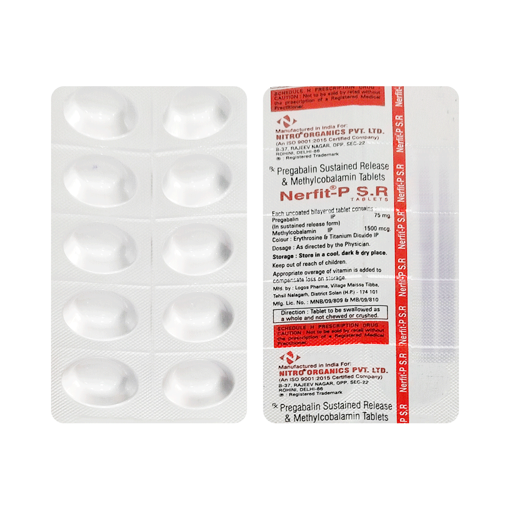 Nerfit-P S.R Tablet is a prescription medicine used for the treatment of neuropathic pain. It decreases pain by modulating the calcium channel activity of the nerve cells. This medicine also protects nerve fibers and heals damaged nerve cells. Nerfit-P S.R Tablet may be taken with or without food, preferably at bedtime. It is advised to take it at the same time each day as this helps to maintain a consistent level of medicine in the body. Take this medicine in the dose and duration advised by your doctor. If you miss a dose of this medicine, take it as soon as you remember. Finish the full course of treatment even if you feel better. This medication must not be stopped suddenly without talking to the doctor.Some common side effects of this medicine include nausea, vomiting, diarrhea, constipation, blurred vision, dizziness, and sleepiness. Do not drive or do anything that requires mental focus until you know how this medicine affects you. The side effects are mild and usually improve with time. It may also cause weight gain in some people. Exercise regularly and have a balanced diet to keep your weight in check. Inform your doctor if you develop any unusual changes in mood or behavior, new or worsening depression, or suicidal thoughts.Your doctor should also know about all other medicines you are taking, as many of these may make this medicine less effective or change the way it works. Inform your doctor if you are pregnant, planning pregnancy, or breastfeeding to make sure it is safe for you and the developing baby.