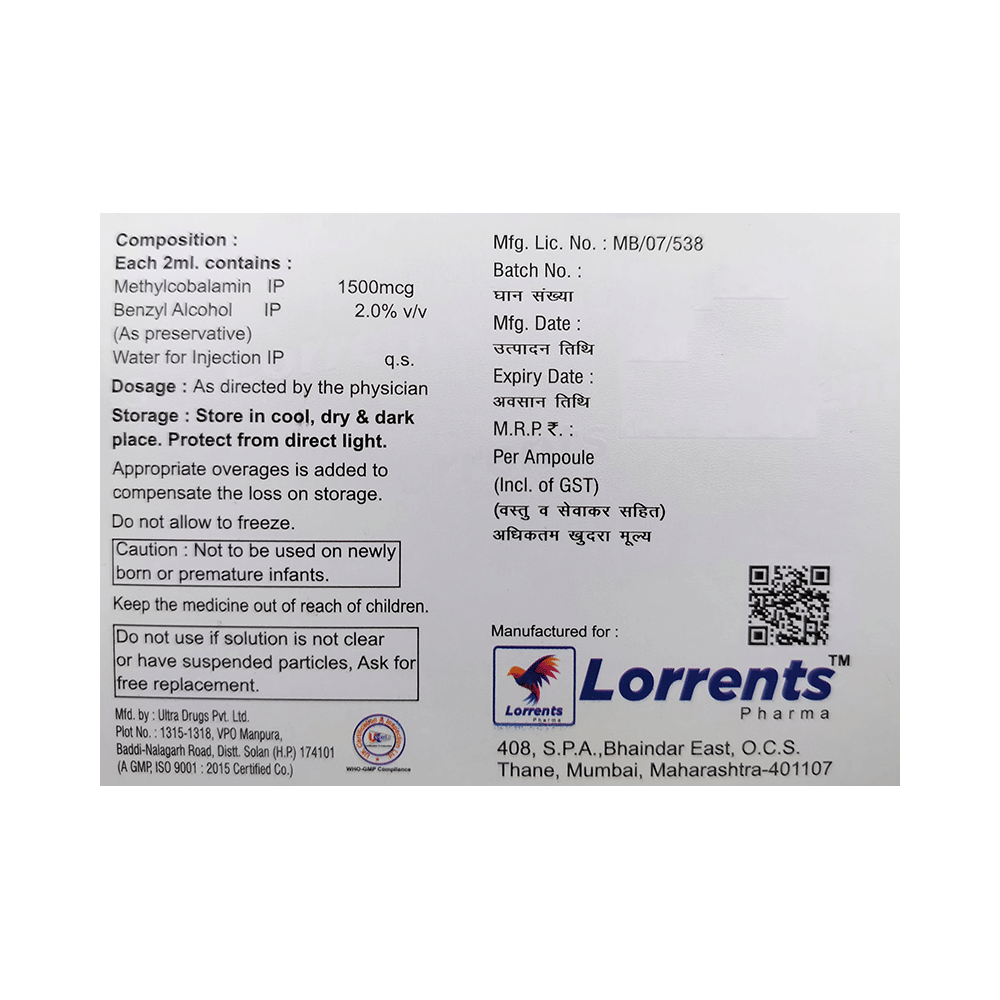 Salt Composition: Methylcobalamin (1500mcg)