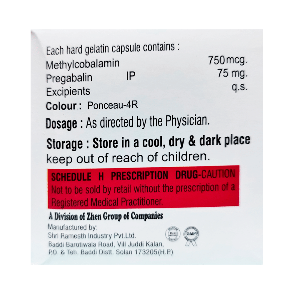 Salt Composition: Methylcobalamin (750mcg) + Pregabalin (75mg)