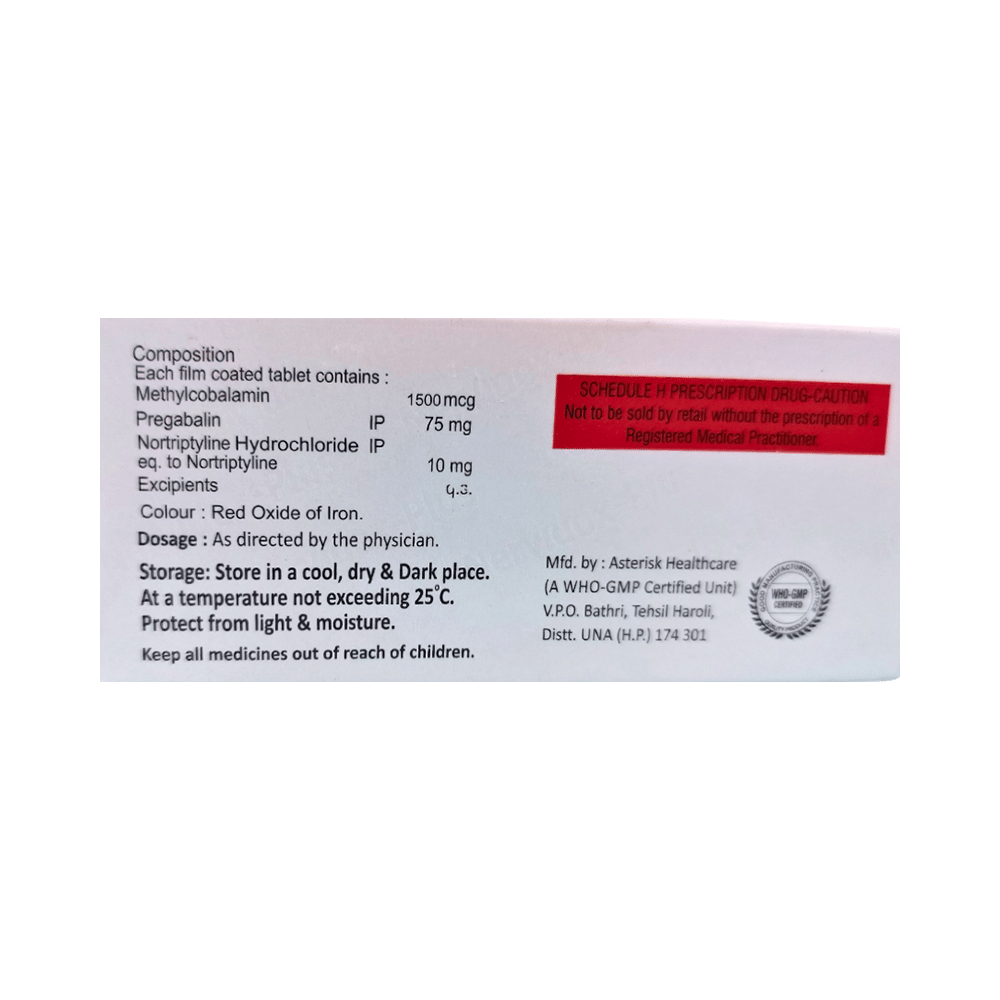 Salt Composition: Pregabalin (75mg) + Nortriptyline (10mg) + Methylcobalamin (1500mcg)