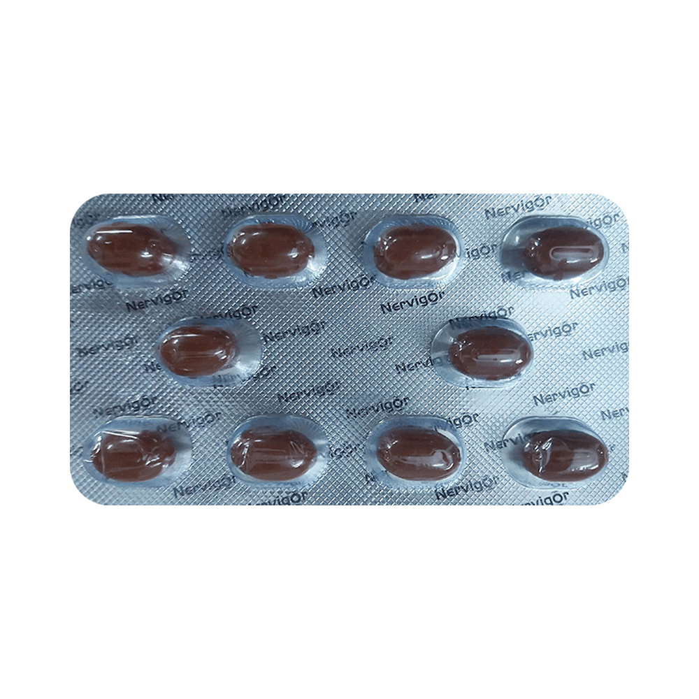Nervigor Soft Gelatin Capsule is a nutritional supplement. It is taken to treat conditions caused by deficiency of vitamins, minerals, and other nutrients in the body. It also ensures proper growth and functioning of the body. Nervigor Soft Gelatin Capsule may be taken with or without food. Take it in the dose and duration advised by the doctor. Take it regularly at the same time each day to get maximum benefits from it. Do not take it more than or longer than prescribed by the doctor, as that may cause harmful effects.It is generally safe medicine without any side effects. However, if some may experience side effects such as diarrhea, nausea, vomiting, heartburn, and constipation. If you experience any such symptoms, let your doctor know. To make sure it is safe for you, let your doctor know about all the other medicines you are taking. Let your doctor also know if you are pregnant or breastfeeding.