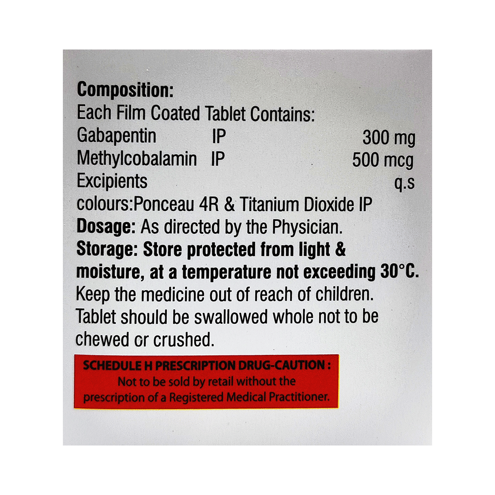 Salt Composition: Gabapentin (300mg) + Methylcobalamin (500mcg)