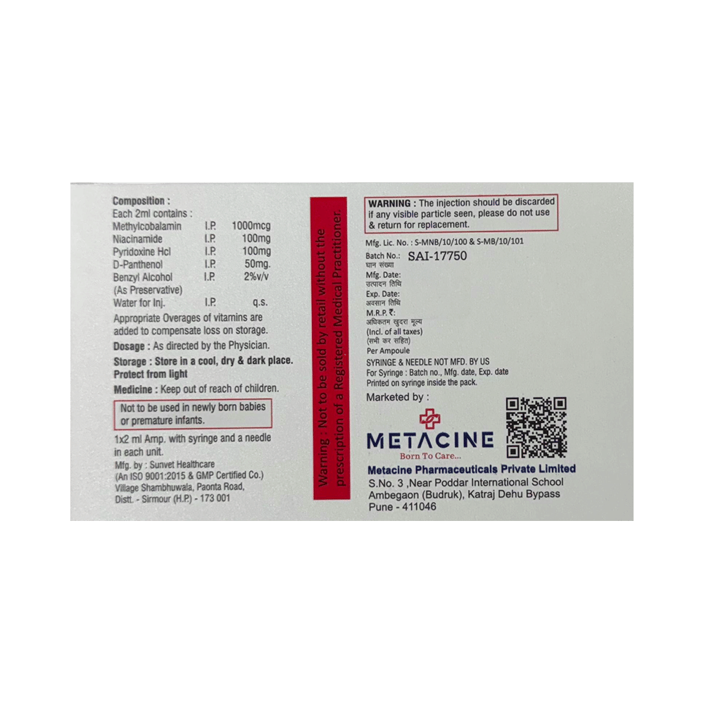 Salt Composition: D-Panthenol (50mg/2ml) + Methylcobalamin (1000mcg/2ml) + Nicotinamide (100mg/2ml) + Pyridoxine Hydrochloride (100mg/2ml)