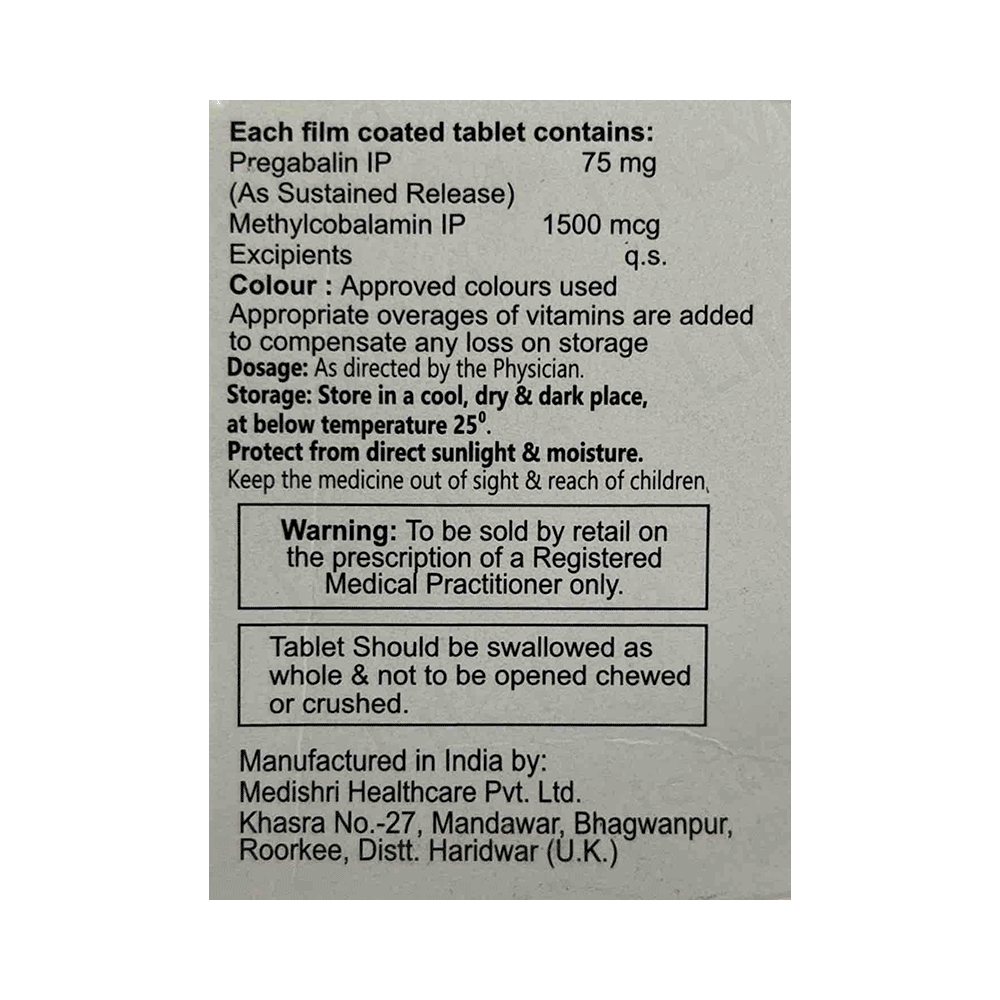 Salt Composition: Methylcobalamin (1500mcg) + Pregabalin (75mg)