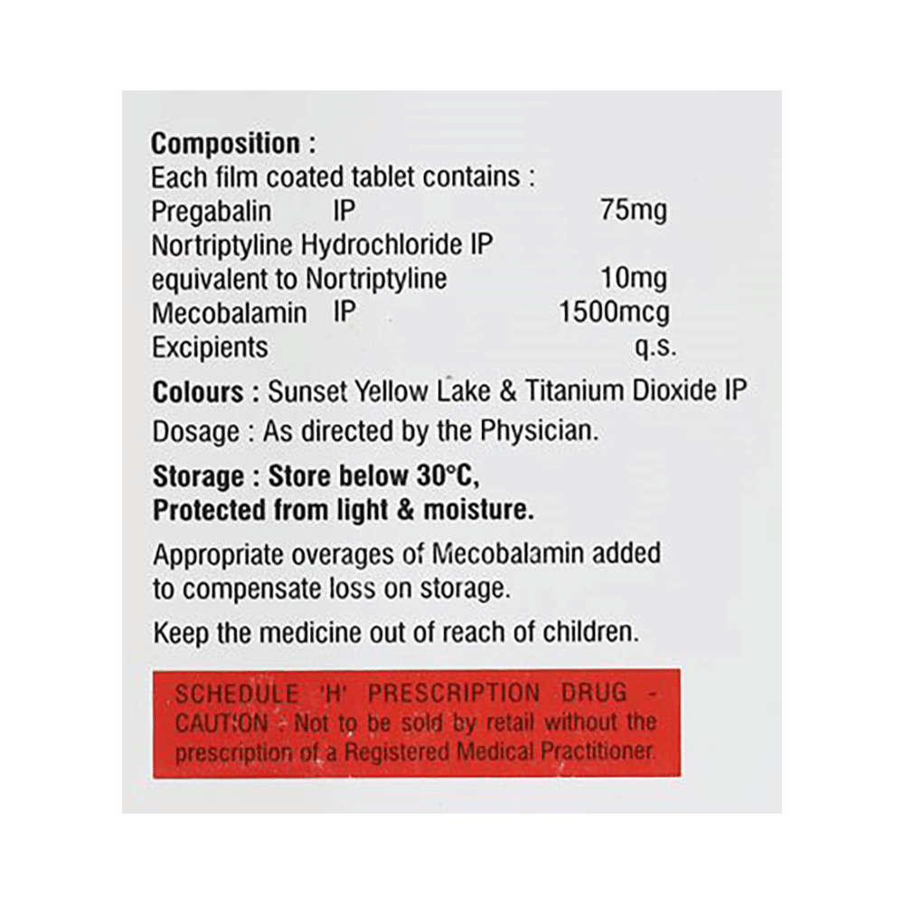 Salt Composition: Pregabalin (75mg) + Nortriptyline (10mg) + Methylcobalamin (1500mcg)