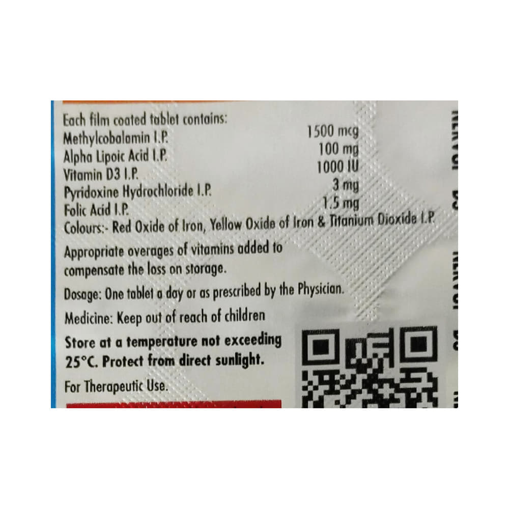 Salt Composition: Methylcobalamin (1500mcg) + Alpha Lipoic Acid (100mg) + Vitamin B6 (Pyridoxine) (3mg) + Folic Acid (1.5mg) + Vitamin D3 (1000IU)