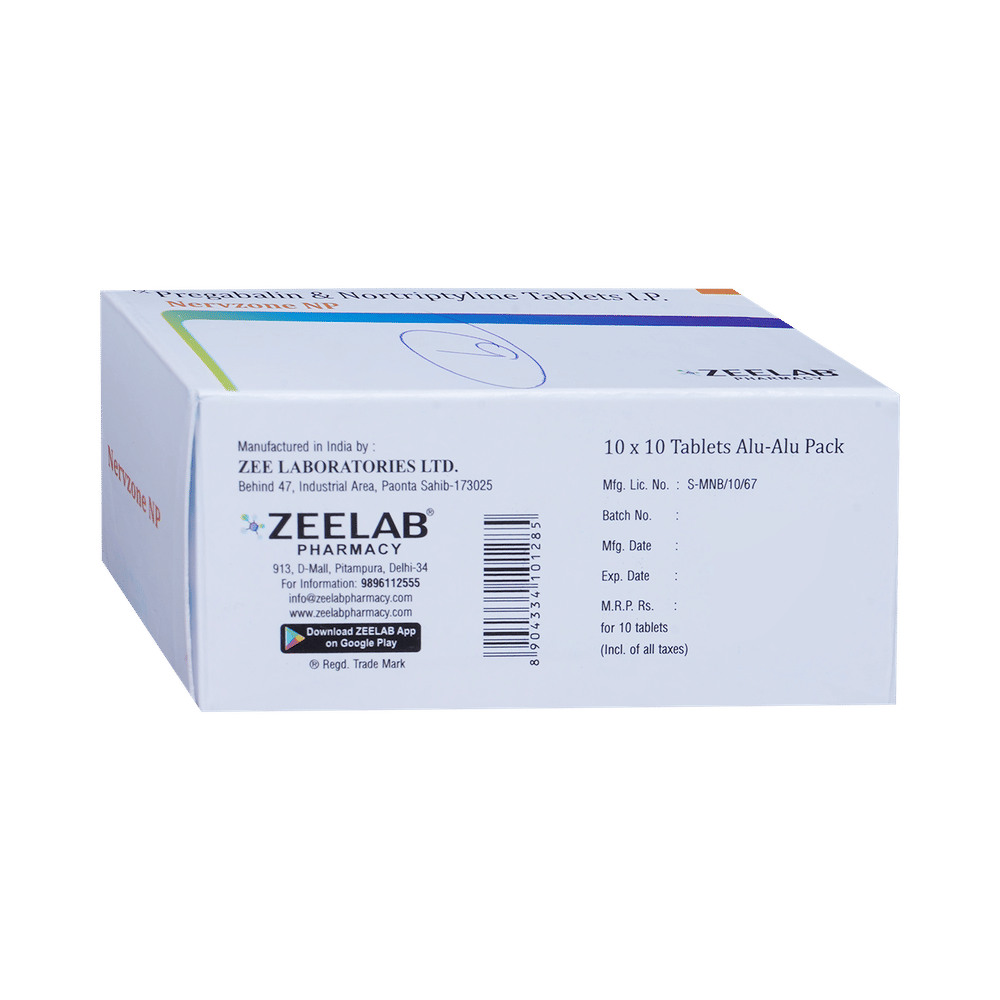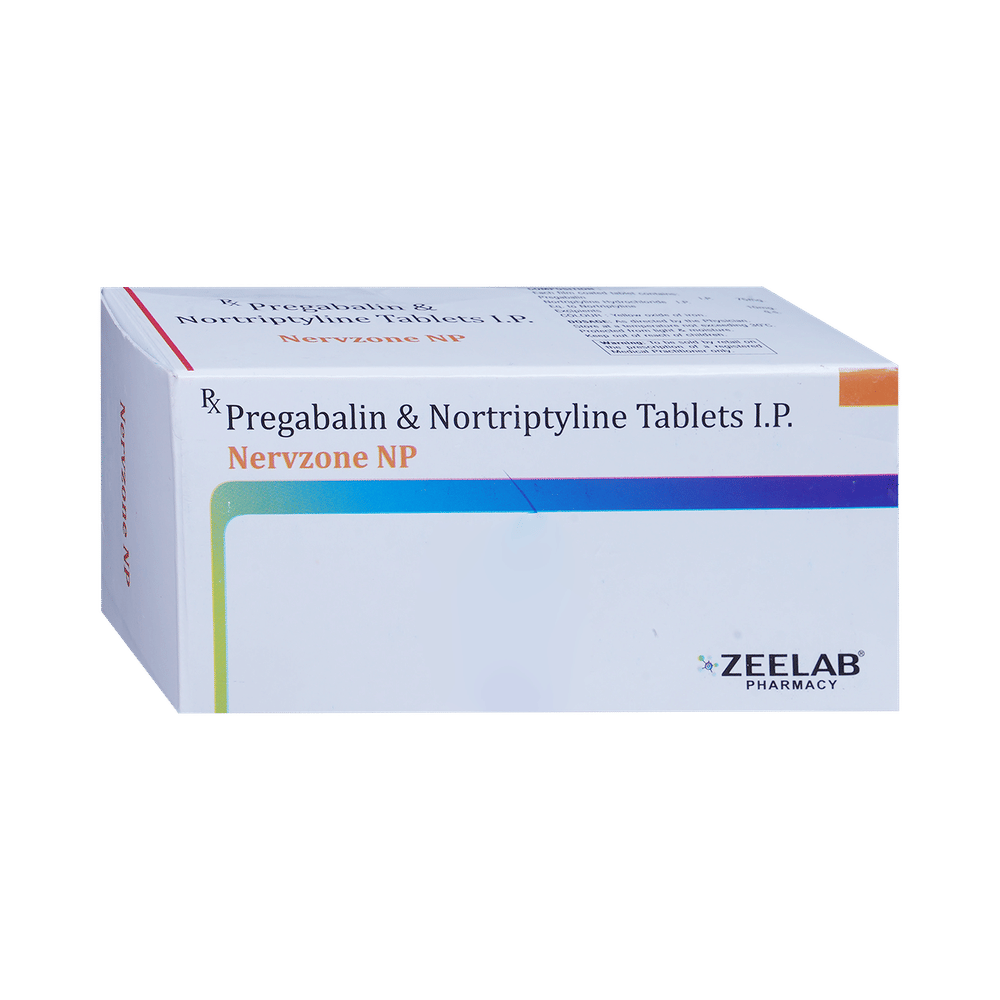 Nervzone NP Tablet is a combination medicine used for the treatment of neuropathic pain. This medicine decreases the pain by stopping the movement of pain signals to the brain. Nervzone NP Tablet may be taken with or without food, preferably at bedtime. Take it at the same time each day as this helps to maintain a consistent level of medicine in the blood. Take this medicine in the dose and duration advised by your doctor. If you miss a dose of this medicine, take it as soon as you remember. Finish the complete course of treatment even if you feel better. Do not stop this medication suddenly without talking to the doctor.Some common side effects of this medicine include constipation, nausea, vision disturbance, and excessive sweating. It may also cause dizziness and sleepiness. So, do not drive or do anything that requires mental focus until you know how this medicine affects you. This medicine may cause weight gain, and to control it, you should exercise regularly and have a balanced diet. It is important to inform your doctor if you develop any unusual changes in mood or behavior, new or worsening depression, or suicidal thoughts.Before taking Nervzone NP Tablet, let your doctor know if you suffer from kidney or liver disease. Your doctor should also know about all other medicines you are taking, as many of these may make this medicine less effective or change the way it works. Inform your doctor if you are pregnant, planning pregnancy, or breastfeeding.