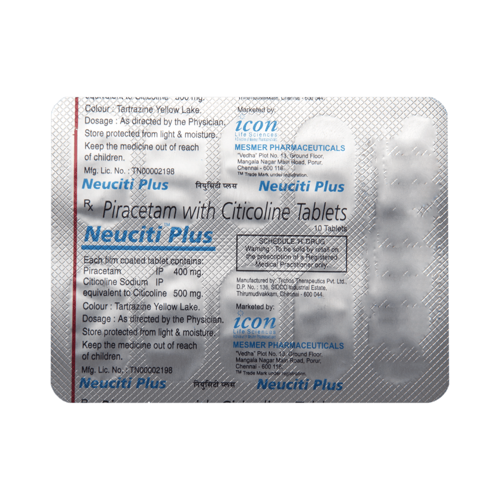 Take this medicine in the dose and duration as advised by your doctor. Swallow it as a whole. Do not chew, crush or break it. Neuciti Plus Tablet may be taken with or without food, but it is better to take it at a fixed time.