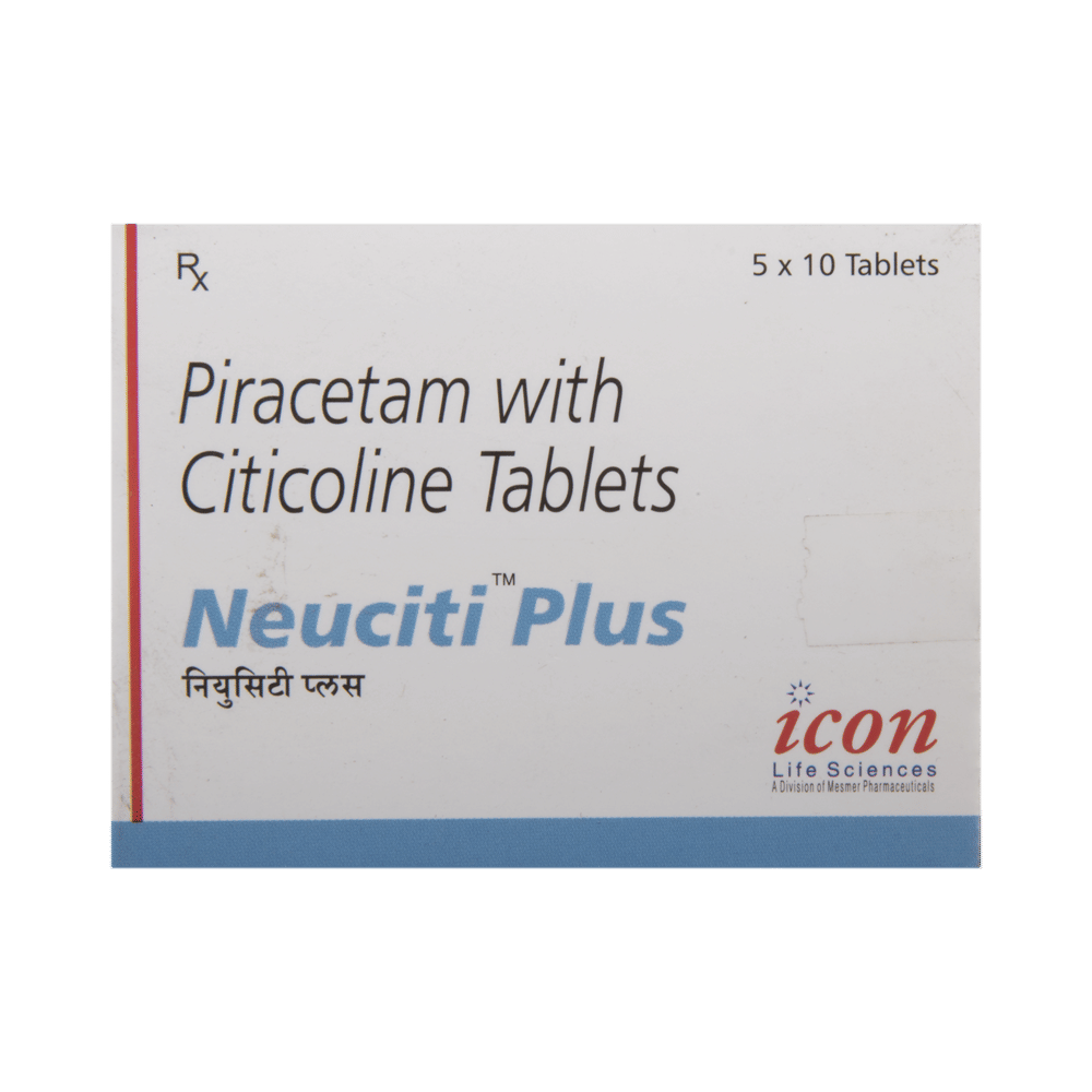Neuciti Plus Tablet is a combination of two medicines: Citicoline and Piracetam. Citicoline is a nerve protecting medicine. It works on the brain by nourishing the nerve cells, protects them from damage and improves their survival. Piracetam is a GABA (gamma amino butyric acid) analogue. It works by protecting the brain and nervous system against shortness of oxygen and also affects various ion channels on nerve cell membrane.