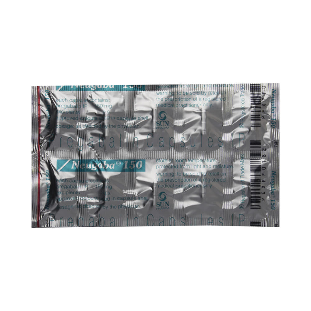 Neugaba 150 Capsule is a medicine used to relieve pain caused by nerve damage (neuropathic pain) due to diabetes, shingles (herpes zoster infection), spinal cord injury, or other conditions. It is also used to treat widespread muscle pain and stiffness in people with fibromyalgia. Neugaba 150 Capsule belongs to the anti-epileptic group of medicines and can also be used to treat certain types of seizures (fits) in combination with other medicines. Additionally, it may also be prescribed to treat the symptoms of anxiety disorder if other medicines are not suitable.You can take Neugaba 150 Capsule with or without food, but it is important to take this medicine at the same time each day to get the most benefit. The exact dose and duration of treatment will depend on your condition and how you respond to it. Your doctor will probably start this medicine at a low dose and increase it gradually. It may take a few weeks for the medicine to work properly. Follow your doctor’s instructions and continue taking it regularly until your doctor advises you to stop. Do not miss any dose, otherwise, your condition may worsen.The side effects of this medicine are usually mild and go away by themselves. The most common ones are feeling sleepy or dizzy, dryness in the mouth, blurred vision, weight gain, edema (swelling over the whole body), and difficulty in concentrating. Most side effects are not serious and do not need medical attention. Talk to your doctor about potential side effects and ways in which you might prevent or cope with them.Before taking the medicine you should tell your doctor if you are pregnant, breastfeeding, or planning to become pregnant. Be careful while driving as sleepiness, dizziness, and blurring of vision may be seen as side effects. You should avoid drinking alcohol along with this medicine as it may lead to excessive sleepiness and dizziness.