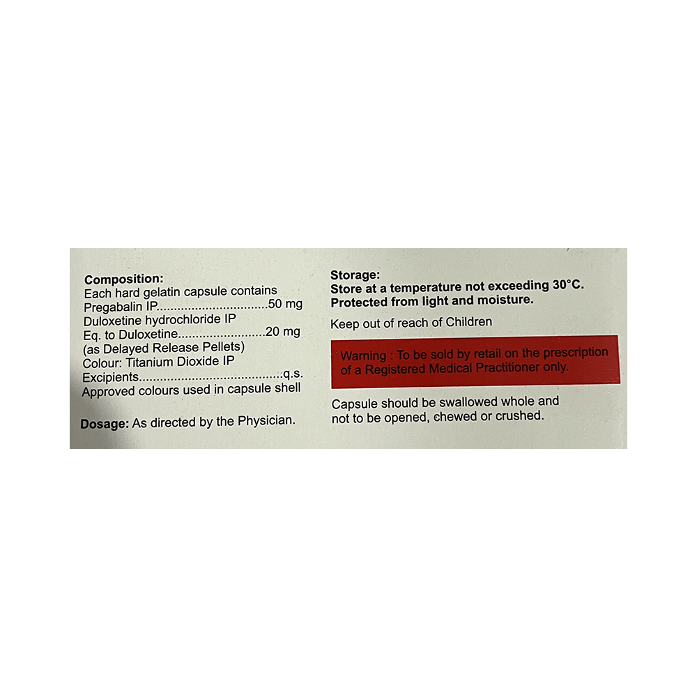 Salt Composition: Pregabalin (50mg) + Duloxetine (20mg)