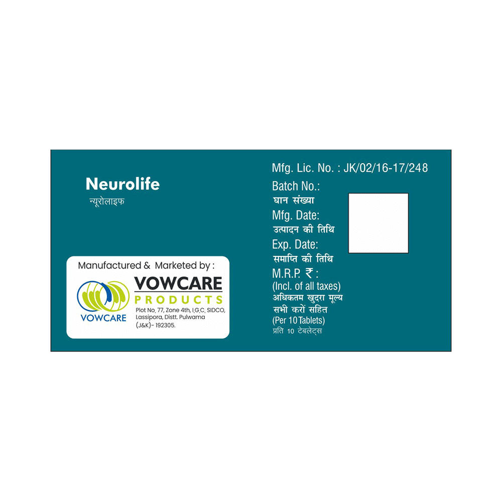 Take this medicine in the dose and duration as advised by your doctor. Swallow it as a whole. Do not chew, crush or break it. Neurolife Tablet may be taken with or without food, but it is better to take it at a fixed time.