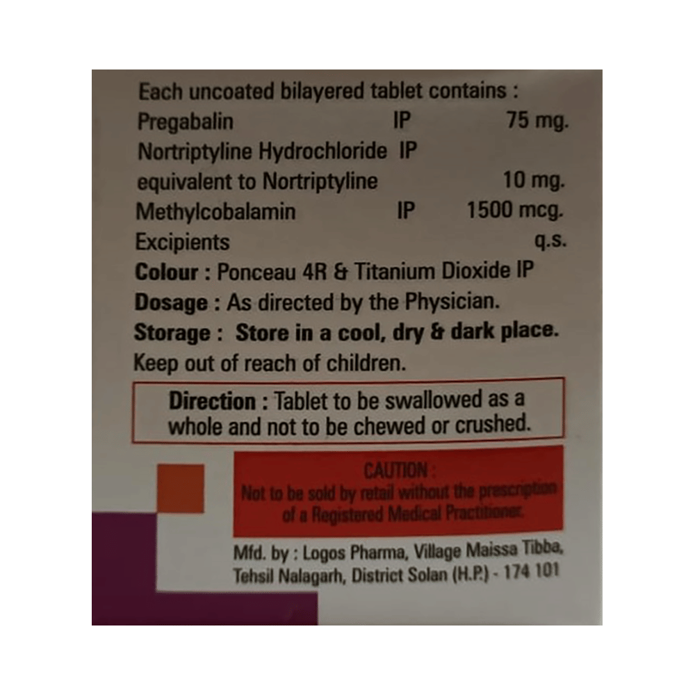 Salt Composition: Pregabalin (75mg) + Nortriptyline (10mg) + Methylcobalamin (1500mcg)